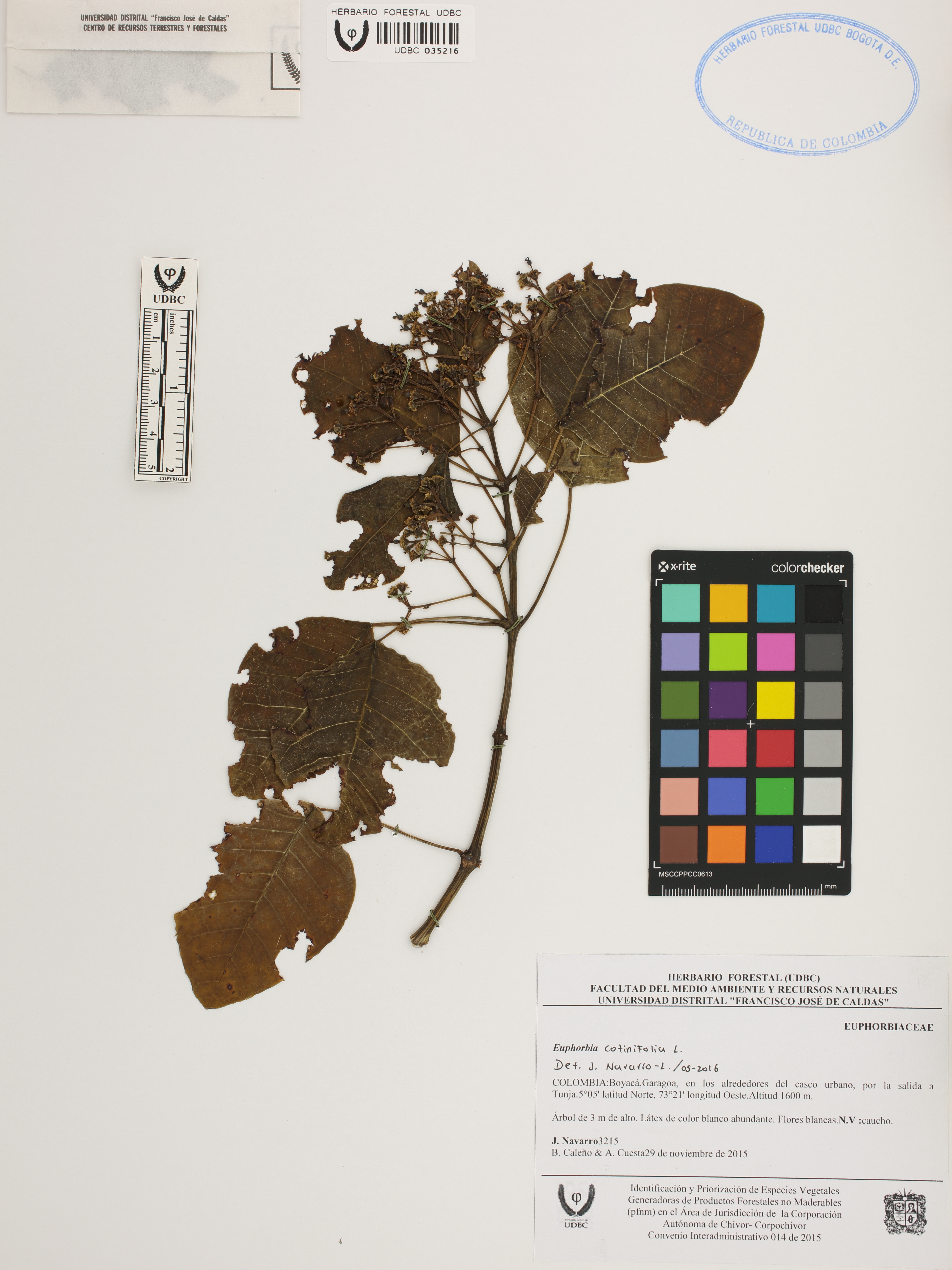 Fotografía del ejemplar Navarro, J. 3215, determinado como Euphorbia cotinifolia en el año 2016