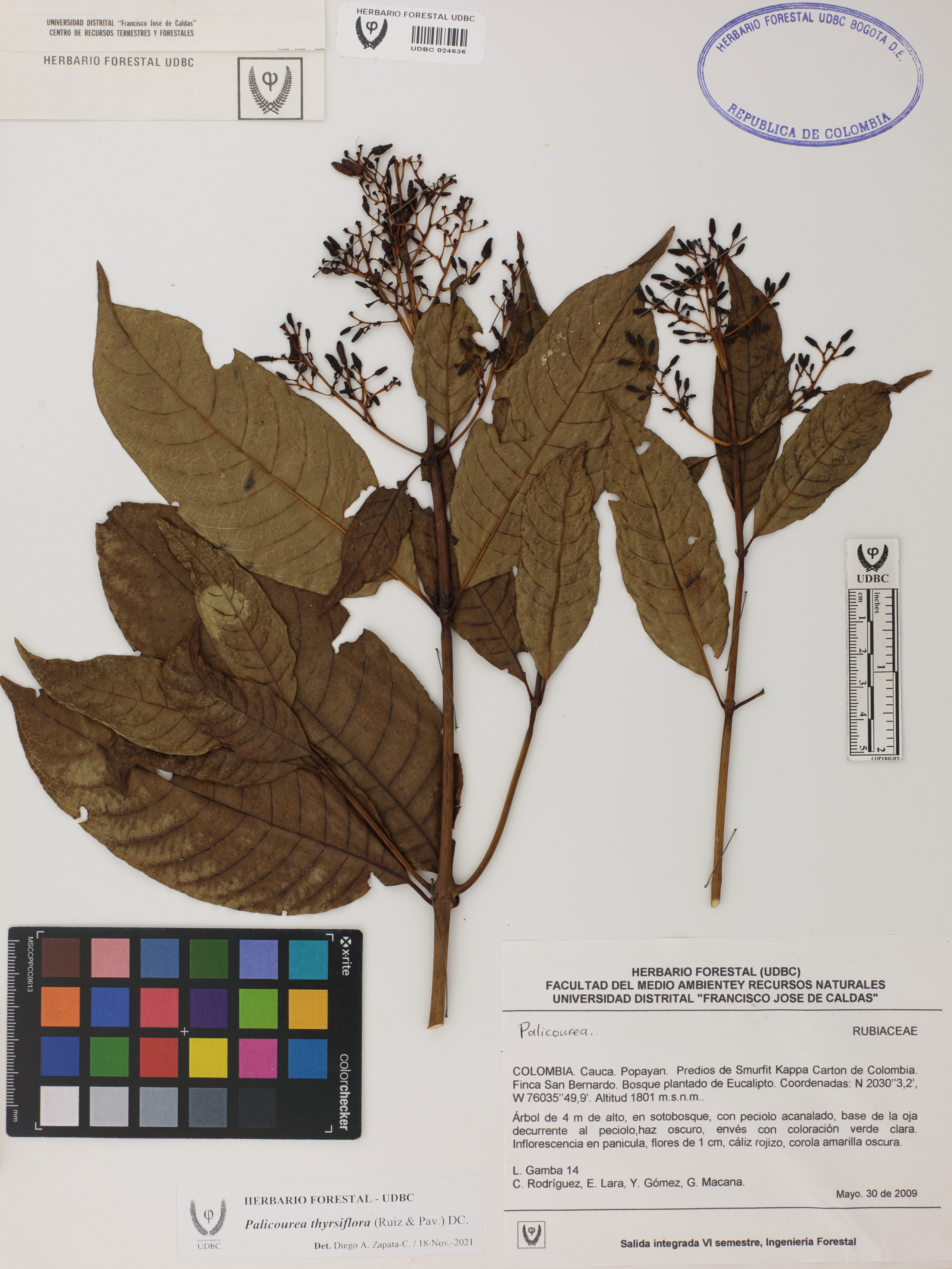 Fotografía del ejemplar Gamba, L. 14, determinado como Palicourea thyrsiflora en el año 2021