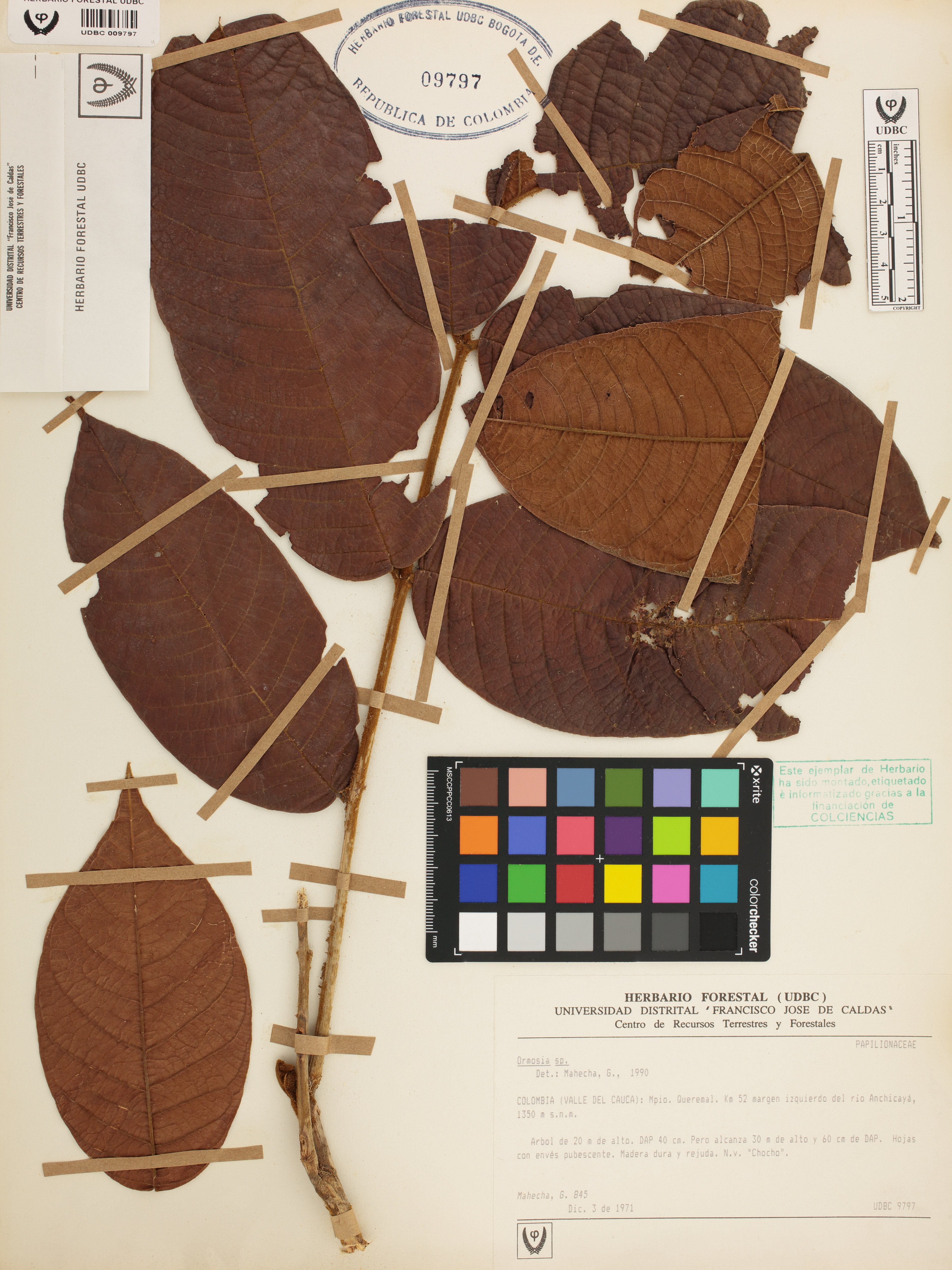 Fotografía del ejemplar Mahecha, G. 845, determinado como Ormosia sp. en el año 1990