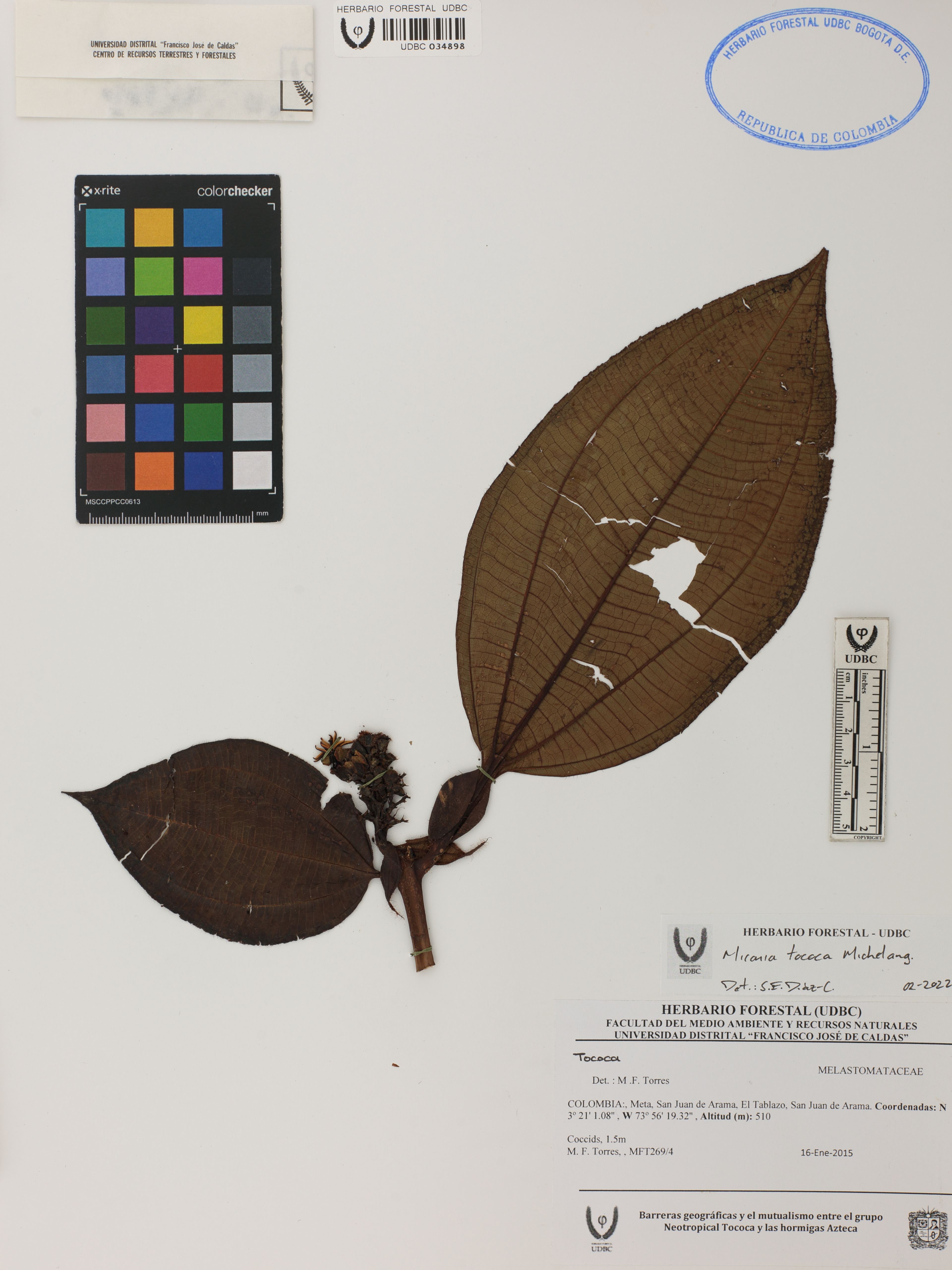 Fotografía del ejemplar Torres, M. 269, determinado como Miconia tococa en el año 2022