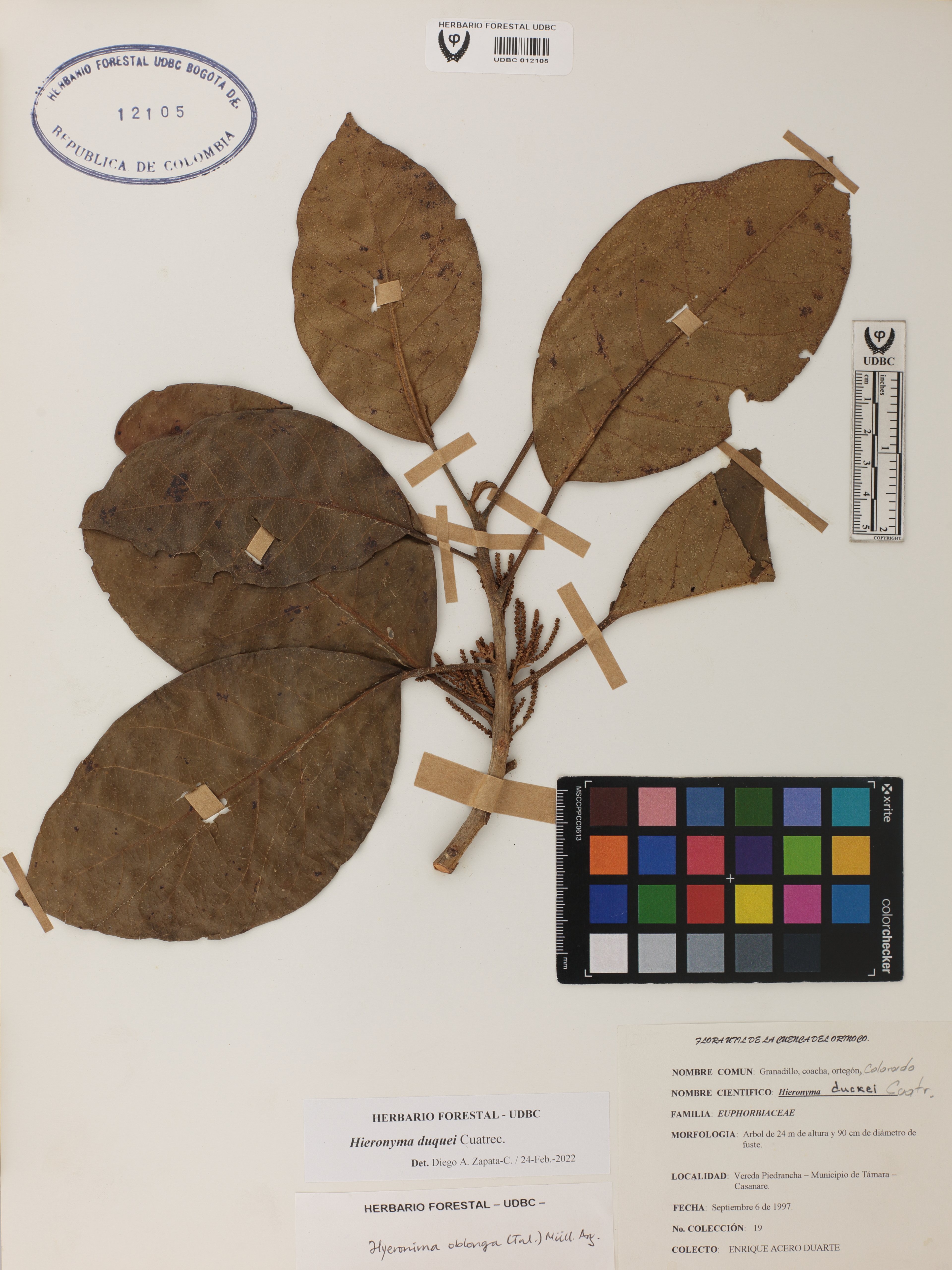 Fotografía del ejemplar Acero, E. 19, determinado como Hieronyma duquei en el año 2022