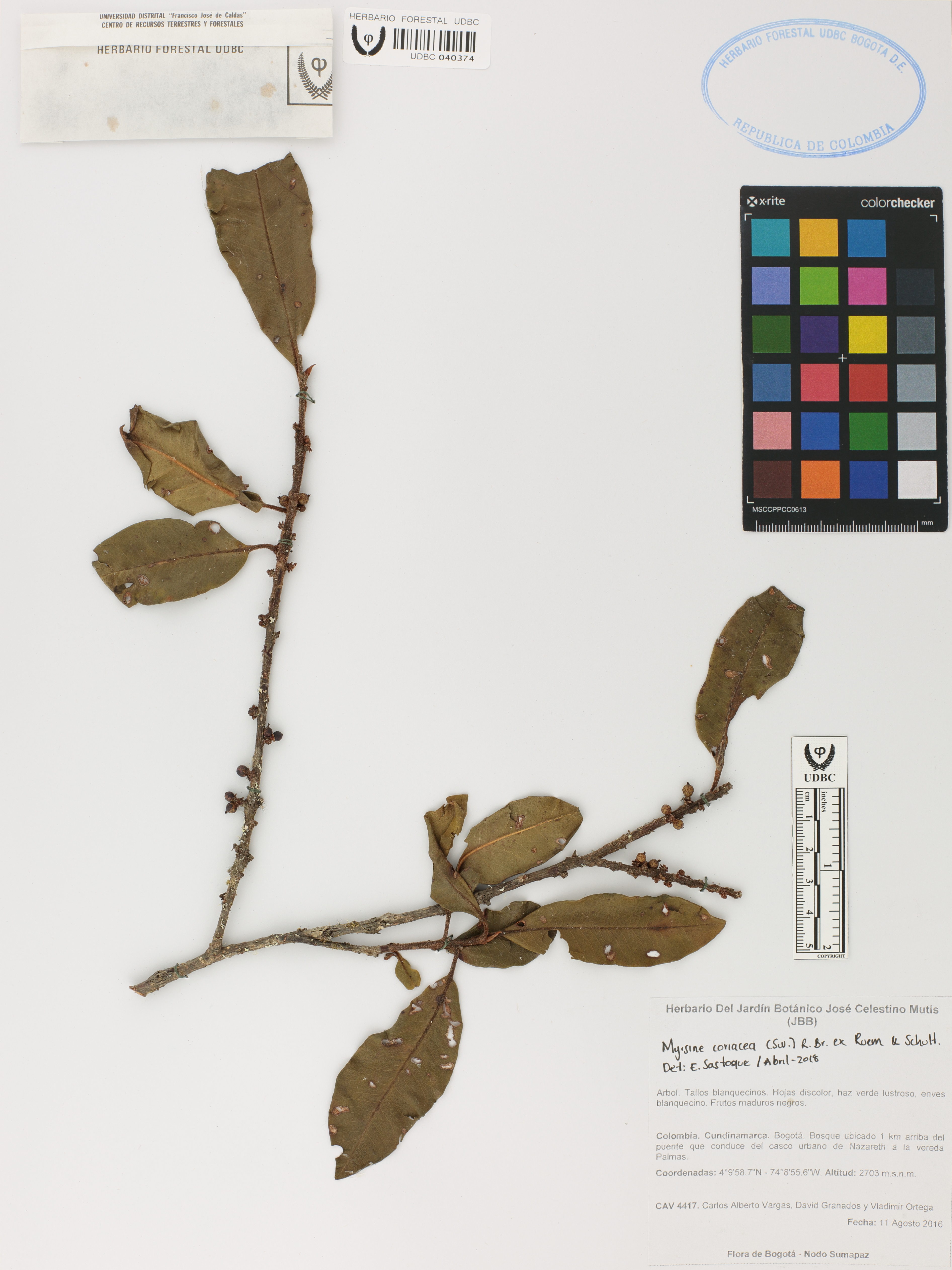 Fotografía del ejemplar Vargas, C. 4417, determinado como Myrsine coriacea en el año 2018