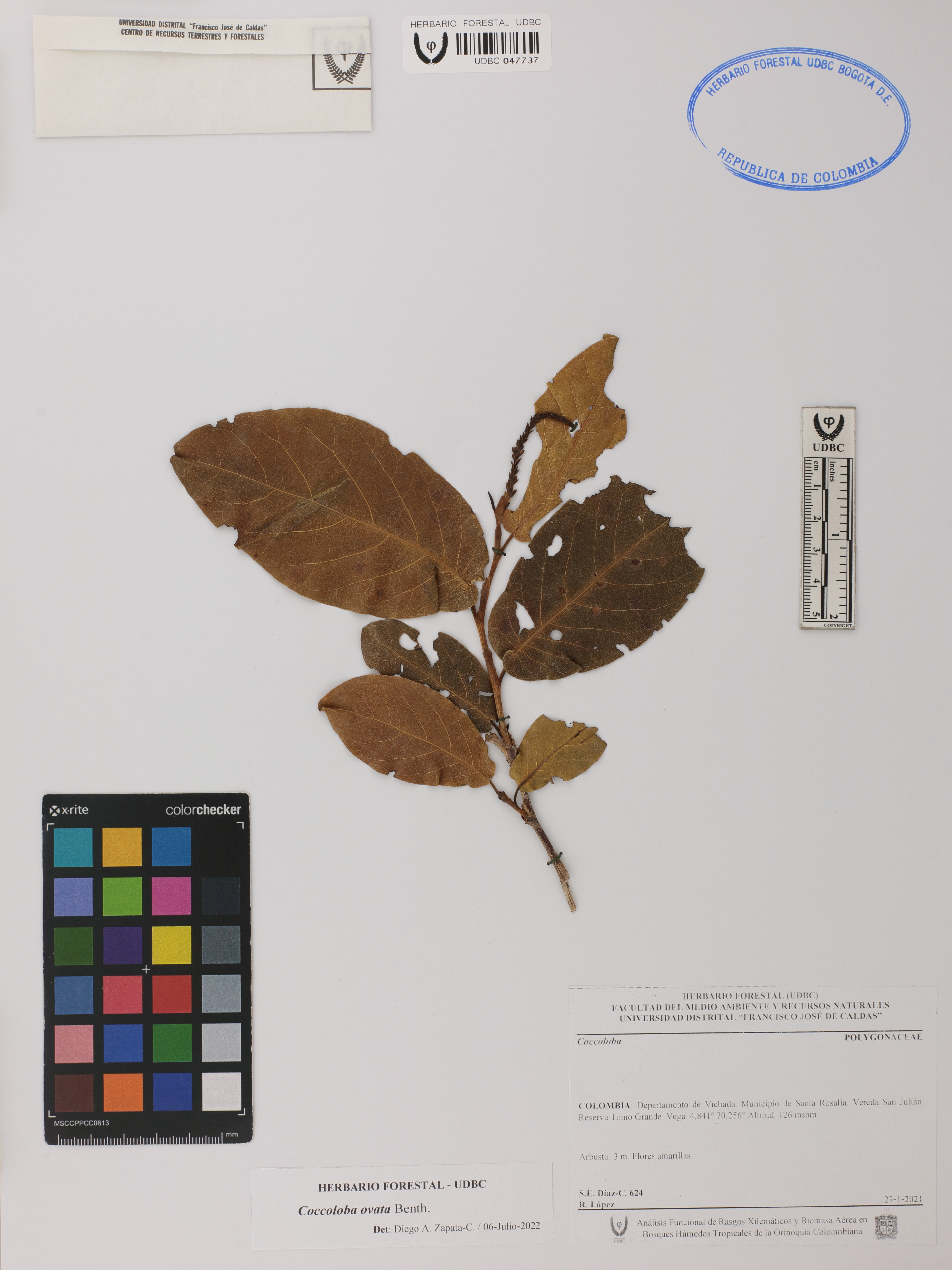 Fotografía del ejemplar Díaz-C., S. 624, determinado como Coccoloba ovata en el año 2022