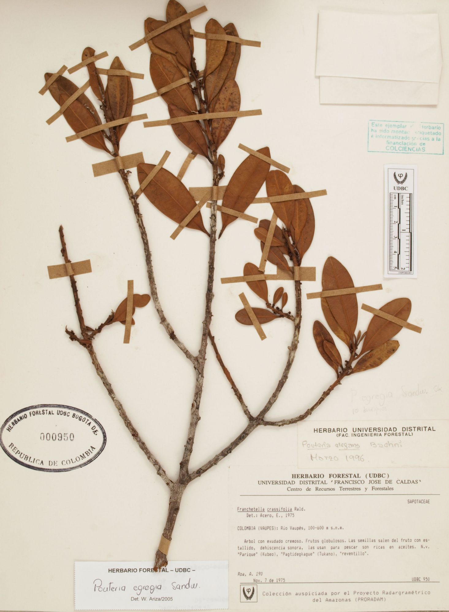 Fotografía del ejemplar Roa, A. 190, determinado como Pouteria egregia en el año 2005