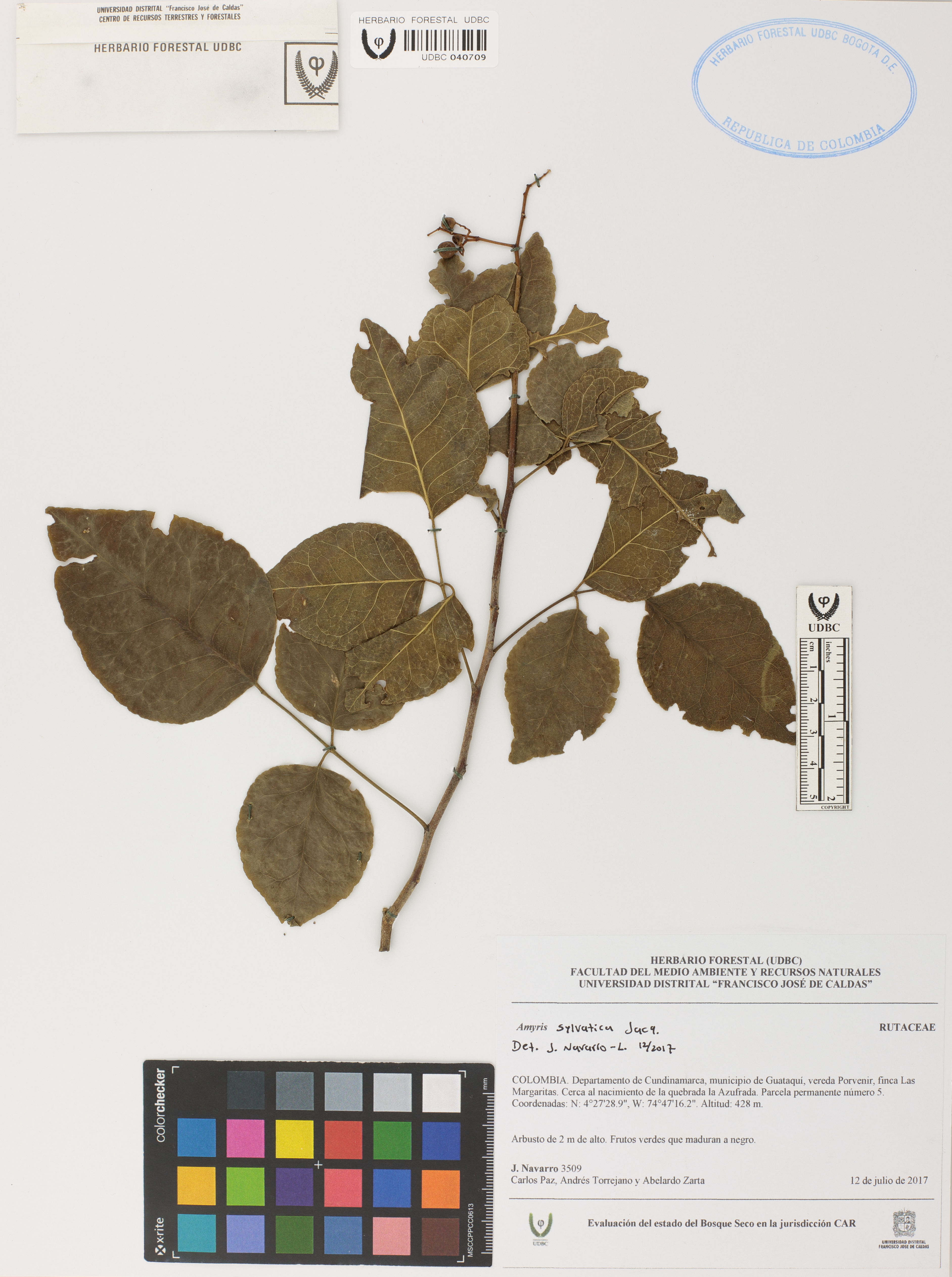 Fotografía del ejemplar Navarro, J. 3509, determinado como Amyris sylvatica en el año 2017