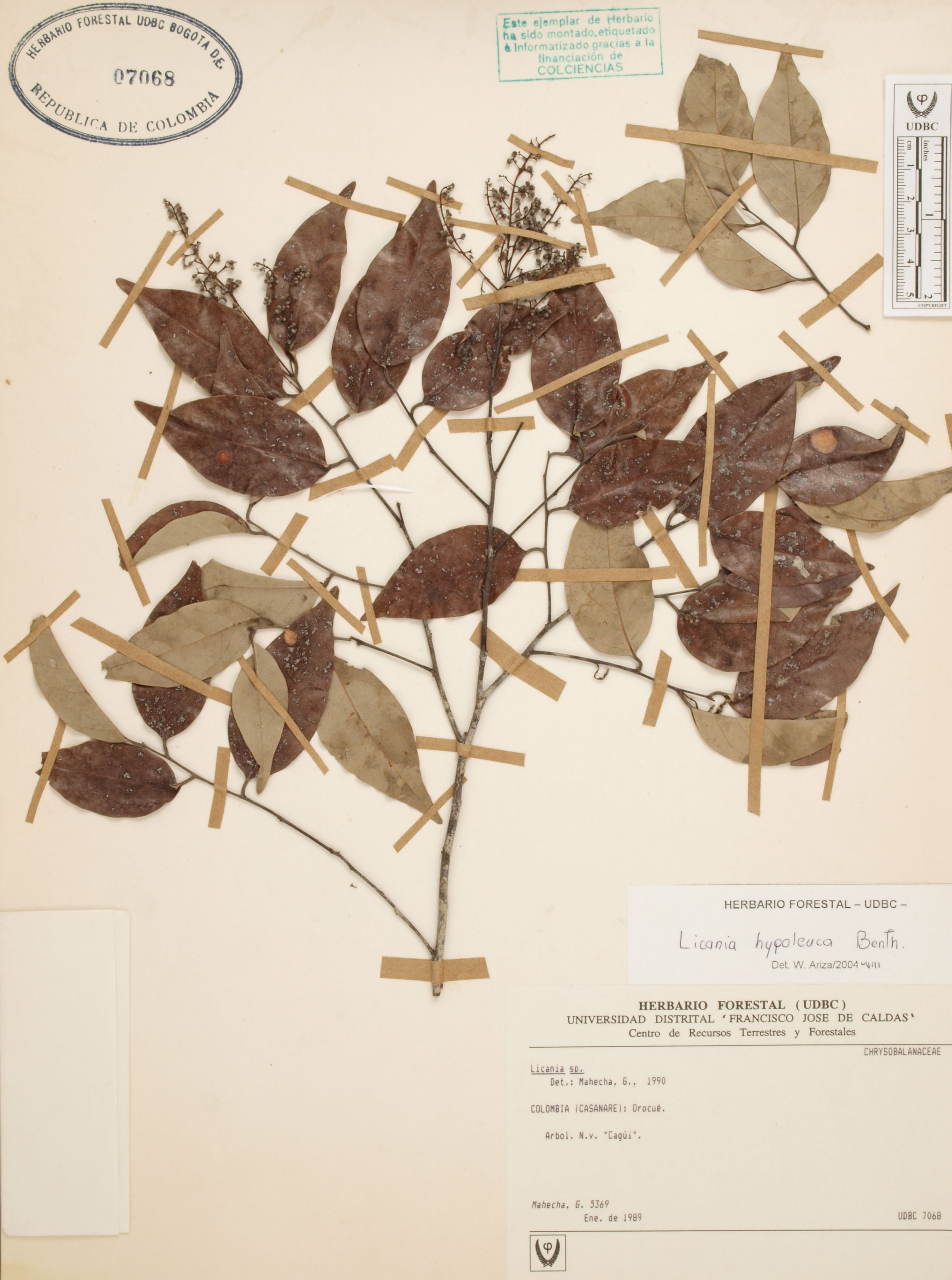 Fotografía del ejemplar Mahecha, G. 5369, determinado como Licania hypoleuca en el año 2004