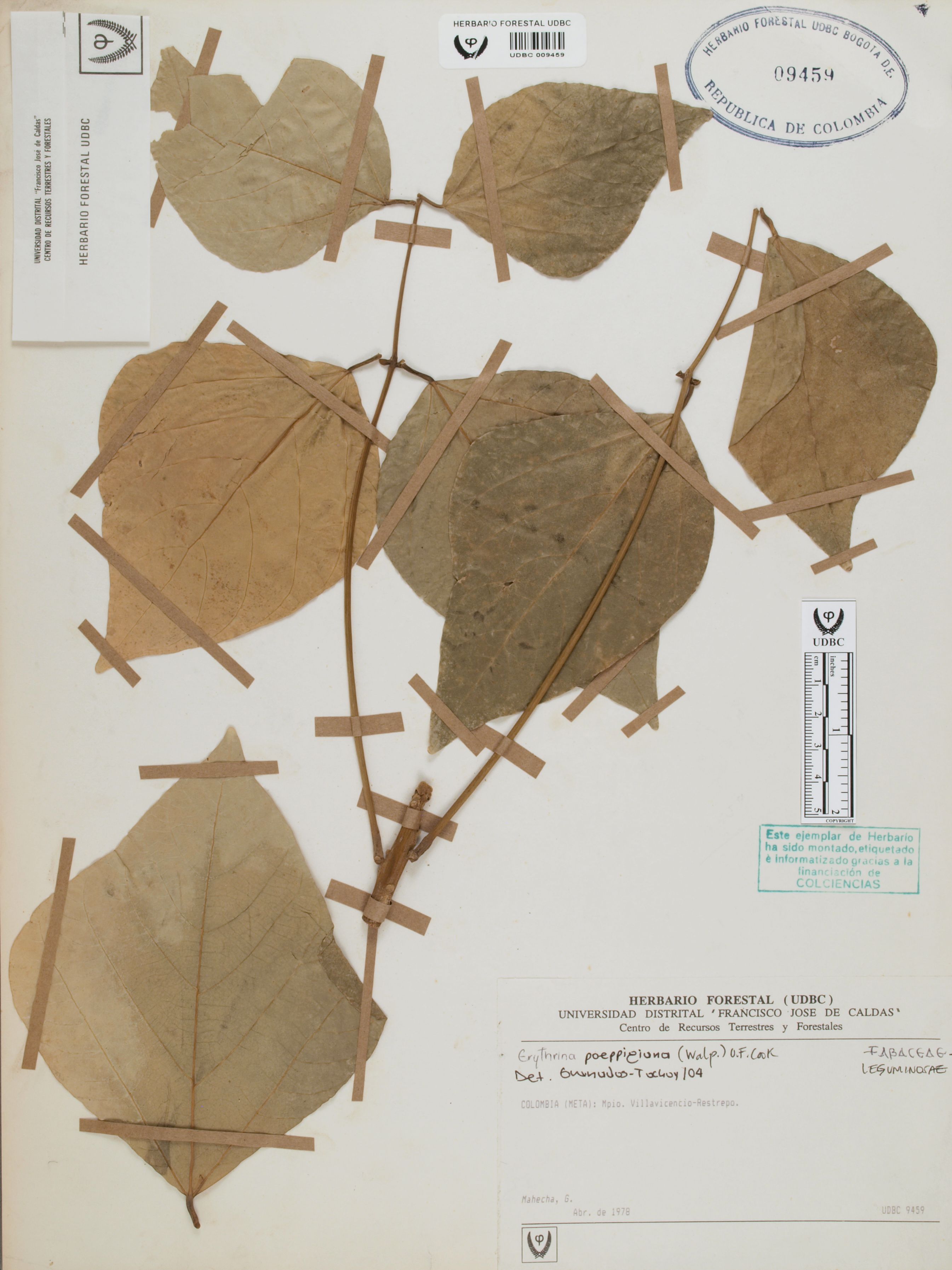 Fotografía del ejemplar Mahecha, G., determinado como Erythrina poeppigiana en el año 2004