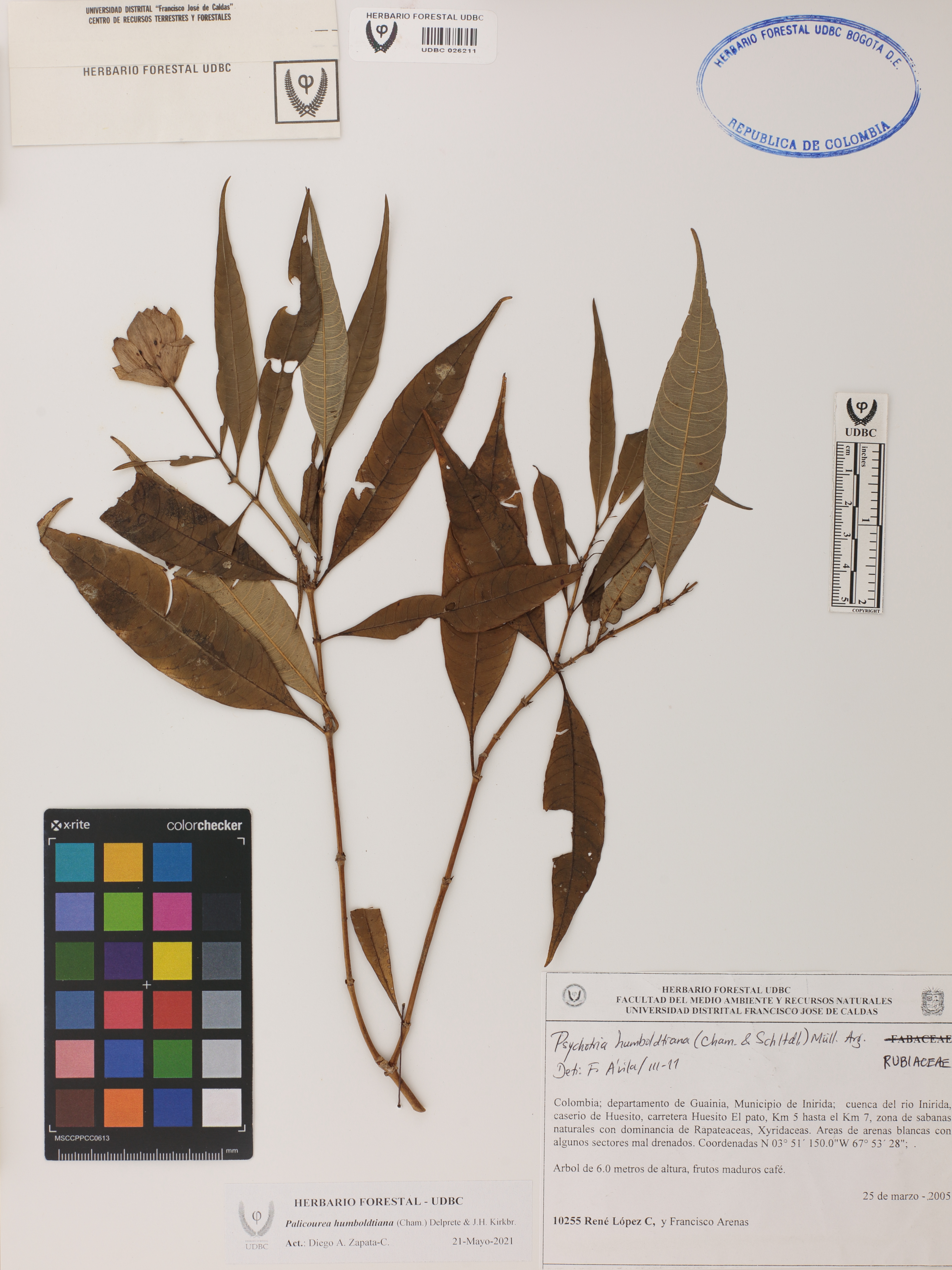 Fotografía del ejemplar López, R. 10255, determinado como Palicourea humboldtiana en el año 2011