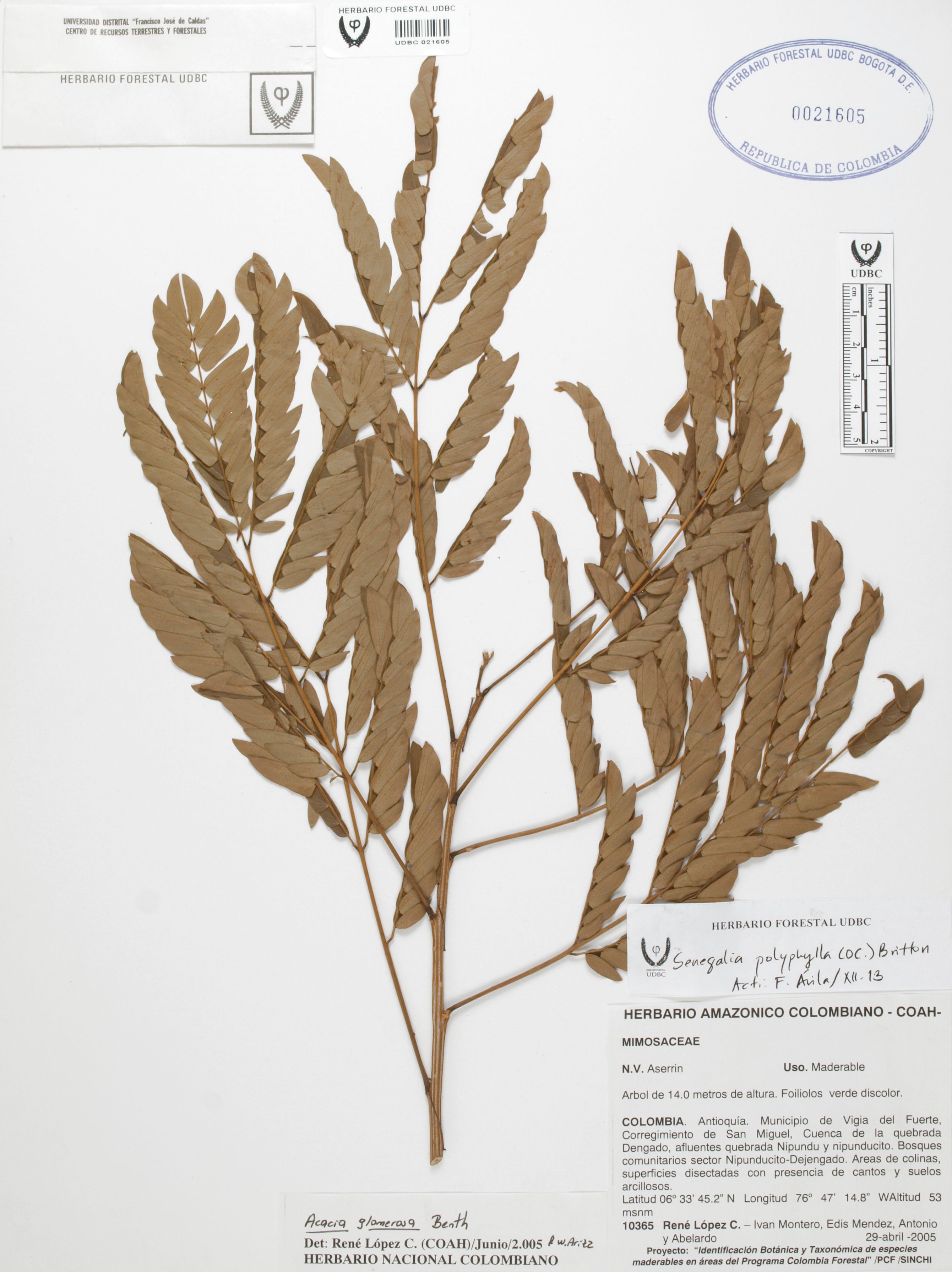 Fotografía del ejemplar López, R. 10365, determinado como Acacia glomerosa en el año 2013
