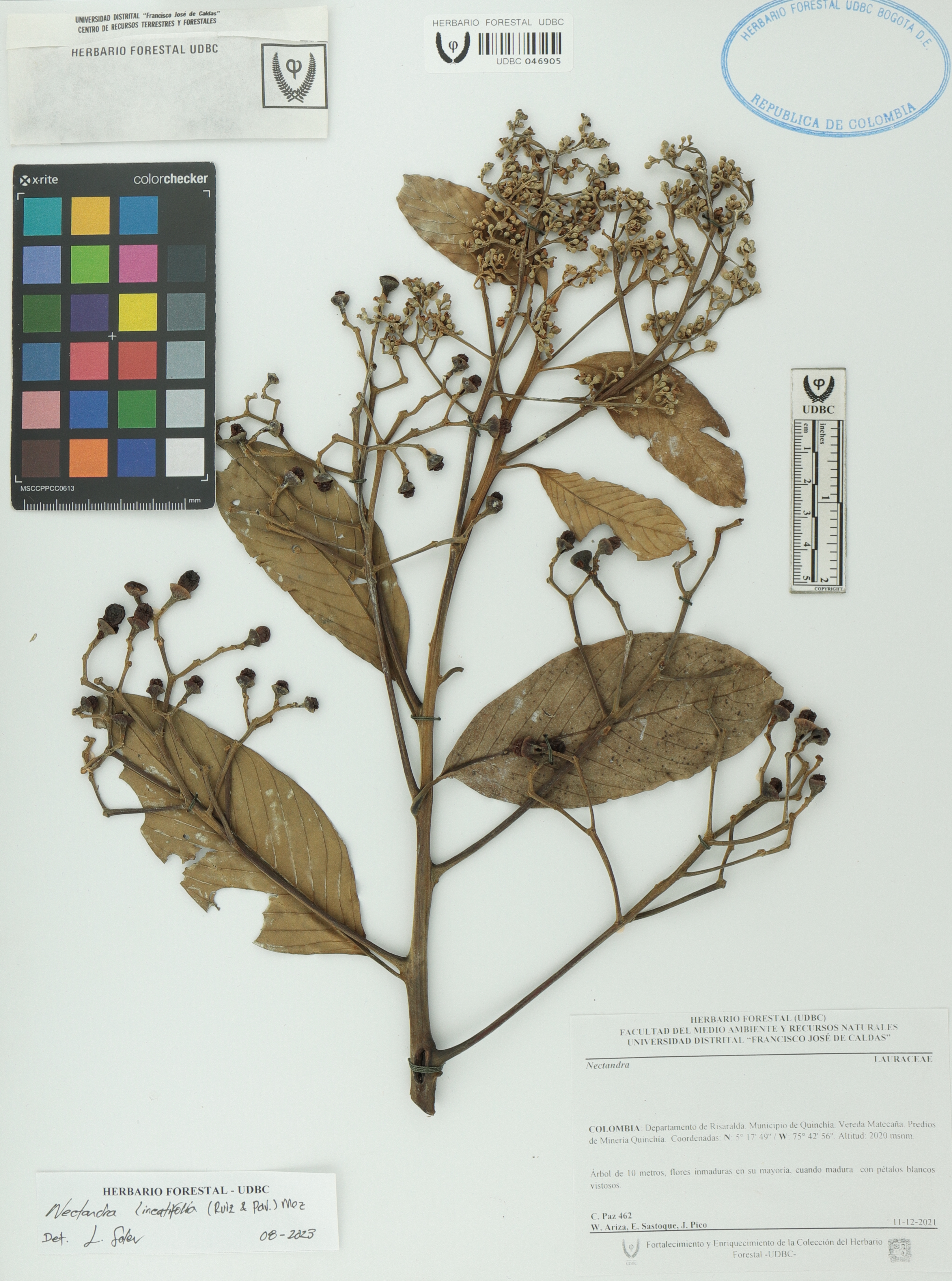 Fotografía del ejemplar Paz, C. 462, determinado como Nectandra lineatifolia en el año 2023