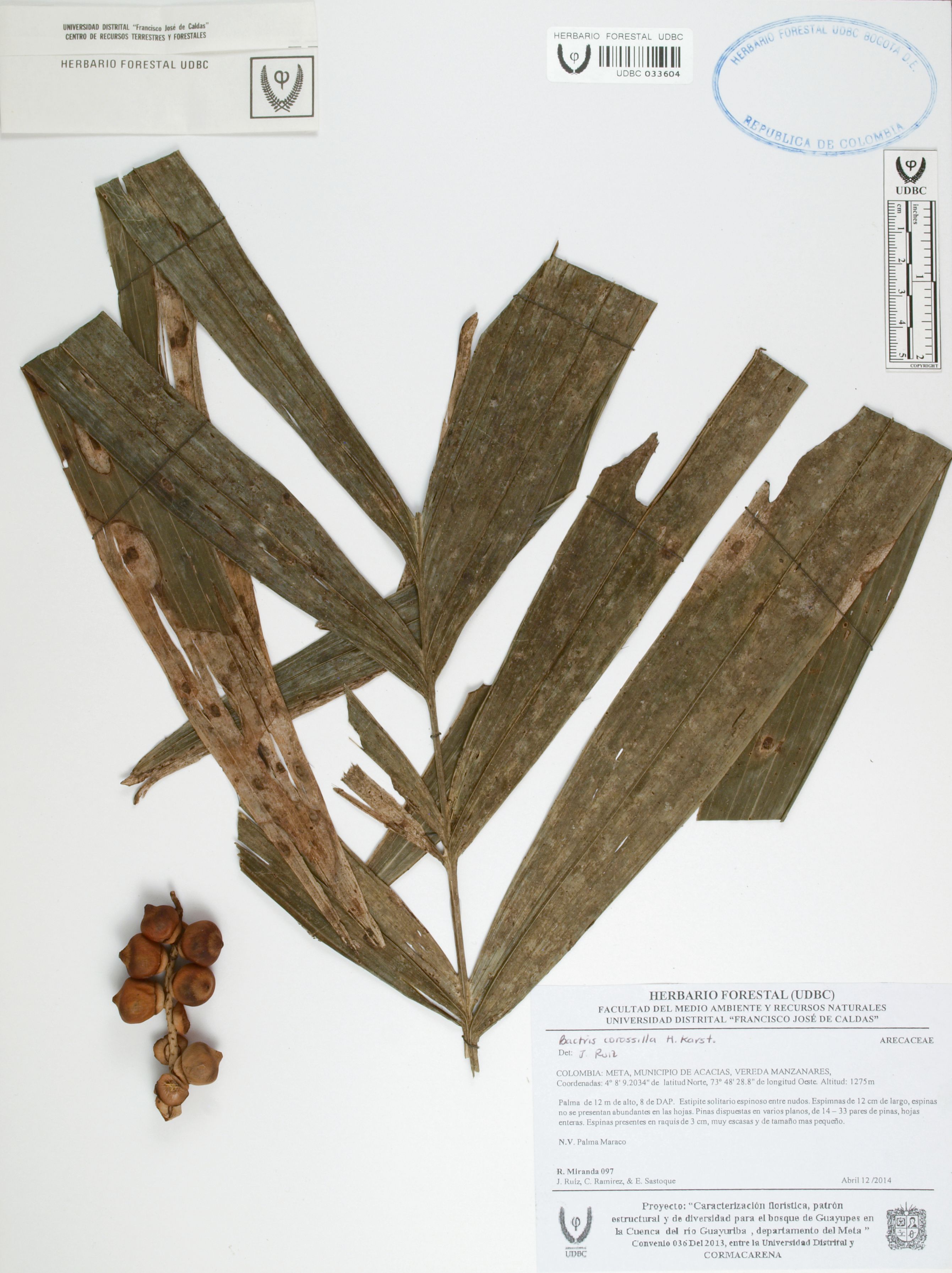 Fotografía del ejemplar Miranda, R. 97, determinado como Bactris corossilla