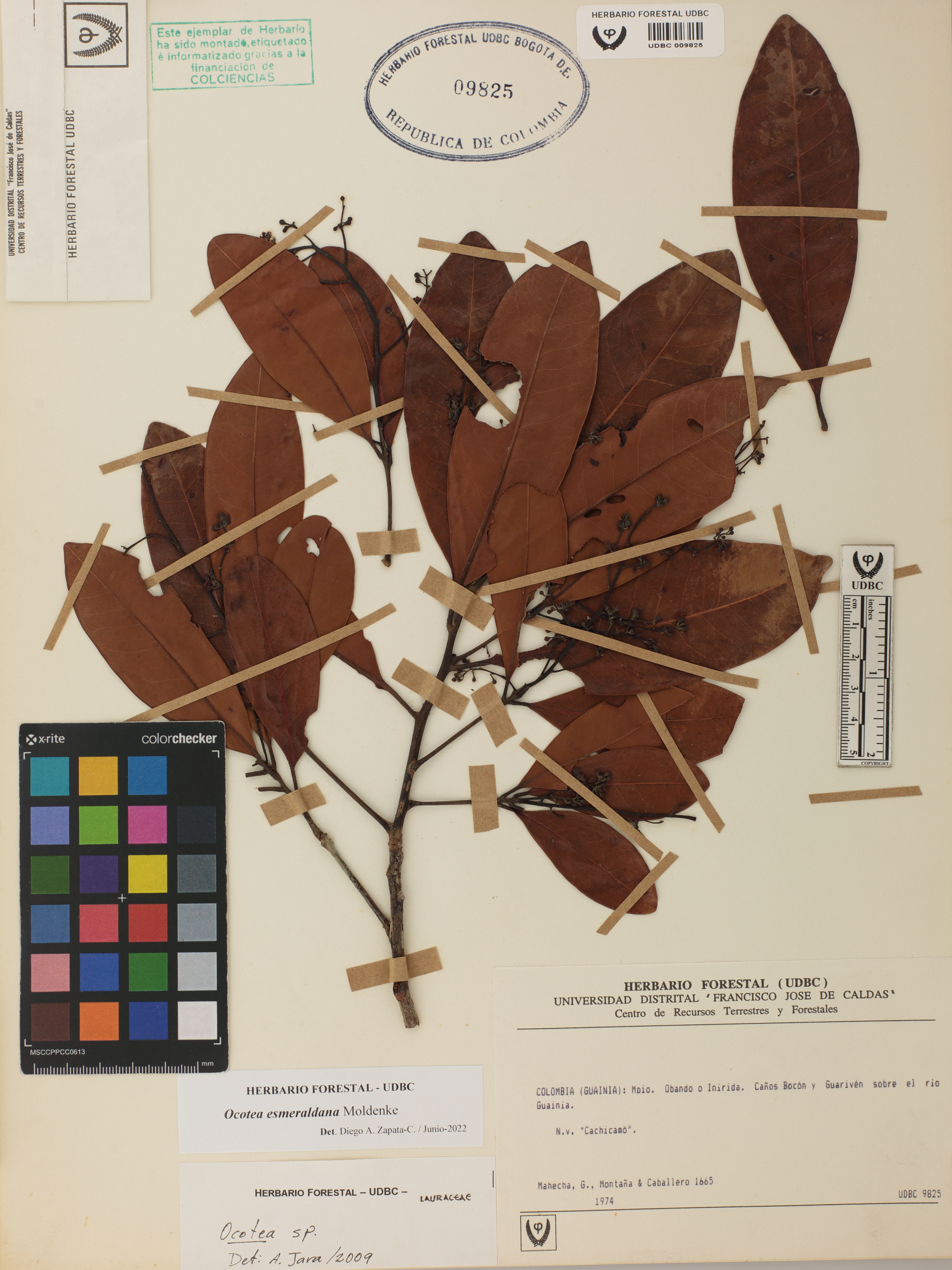 Fotografía del ejemplar Mahecha, G. 1665, determinado como Ocotea esmeraldana en el año 2022