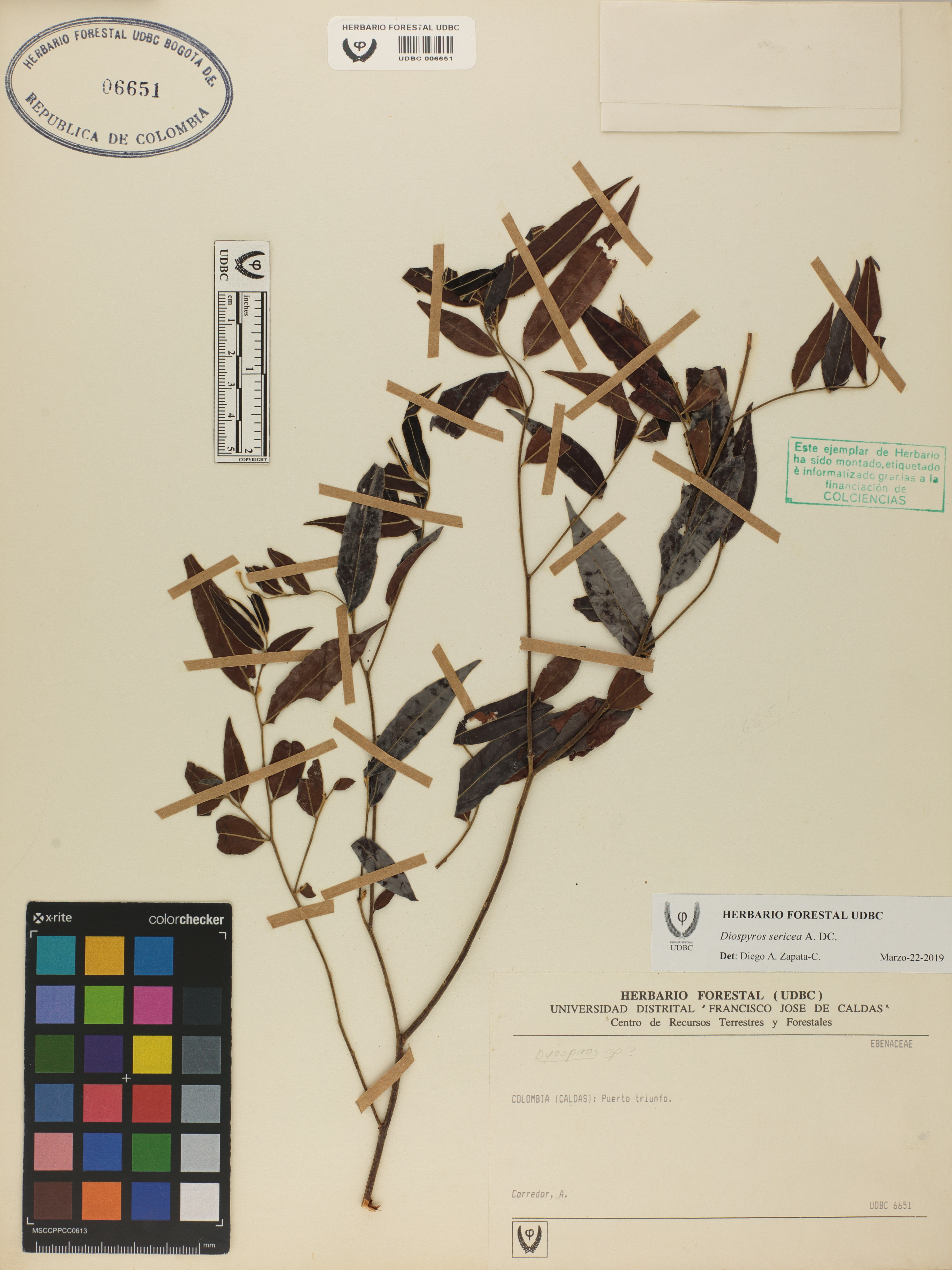 Fotografía del ejemplar Corredor, A., determinado como Diospyros sericea en el año 2019