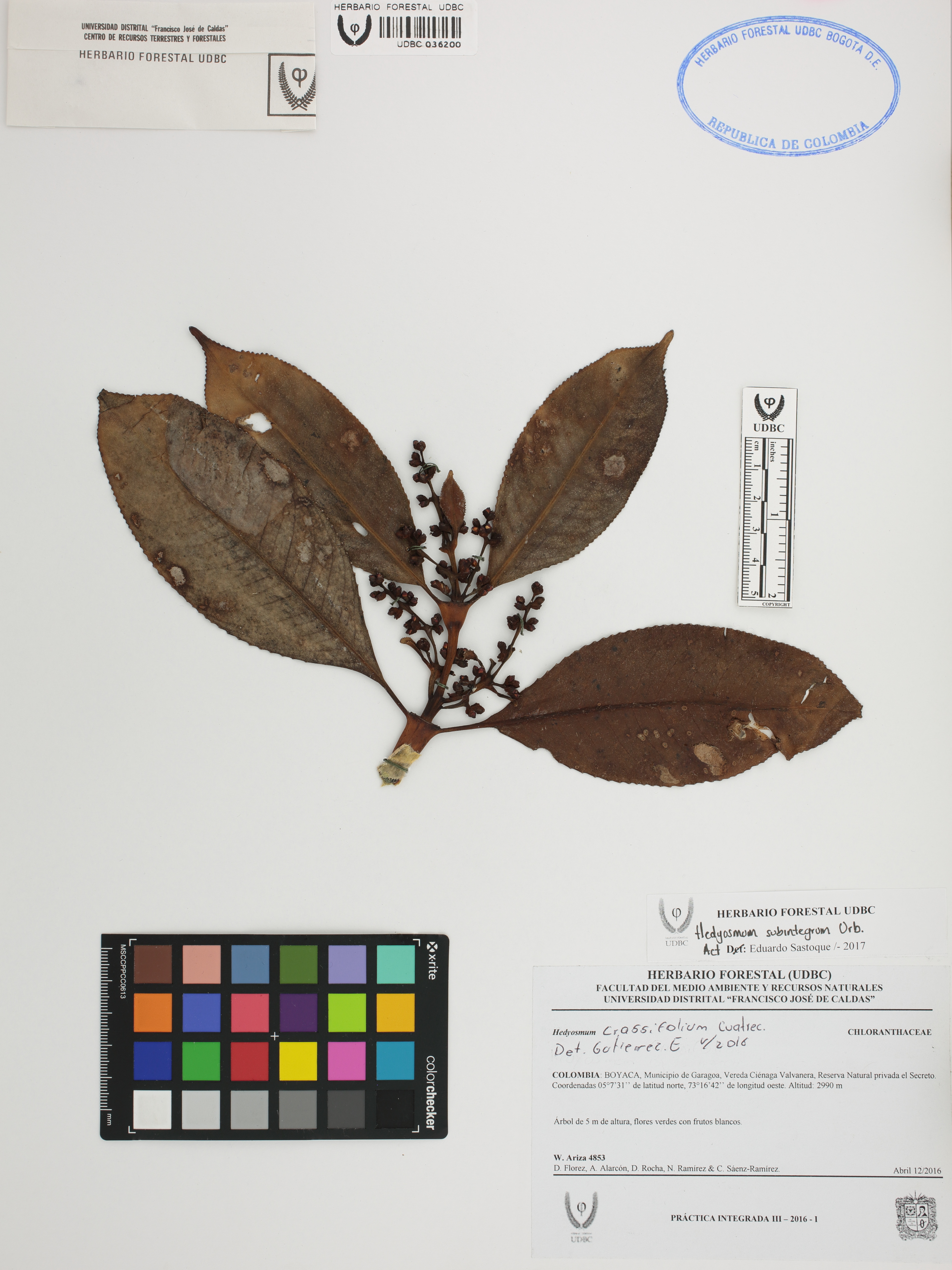 | dc.description | Fotografía del ejemplar Ariza, W. 4853, determinado como Hedyosmum subintegrum en el año 2016 | |