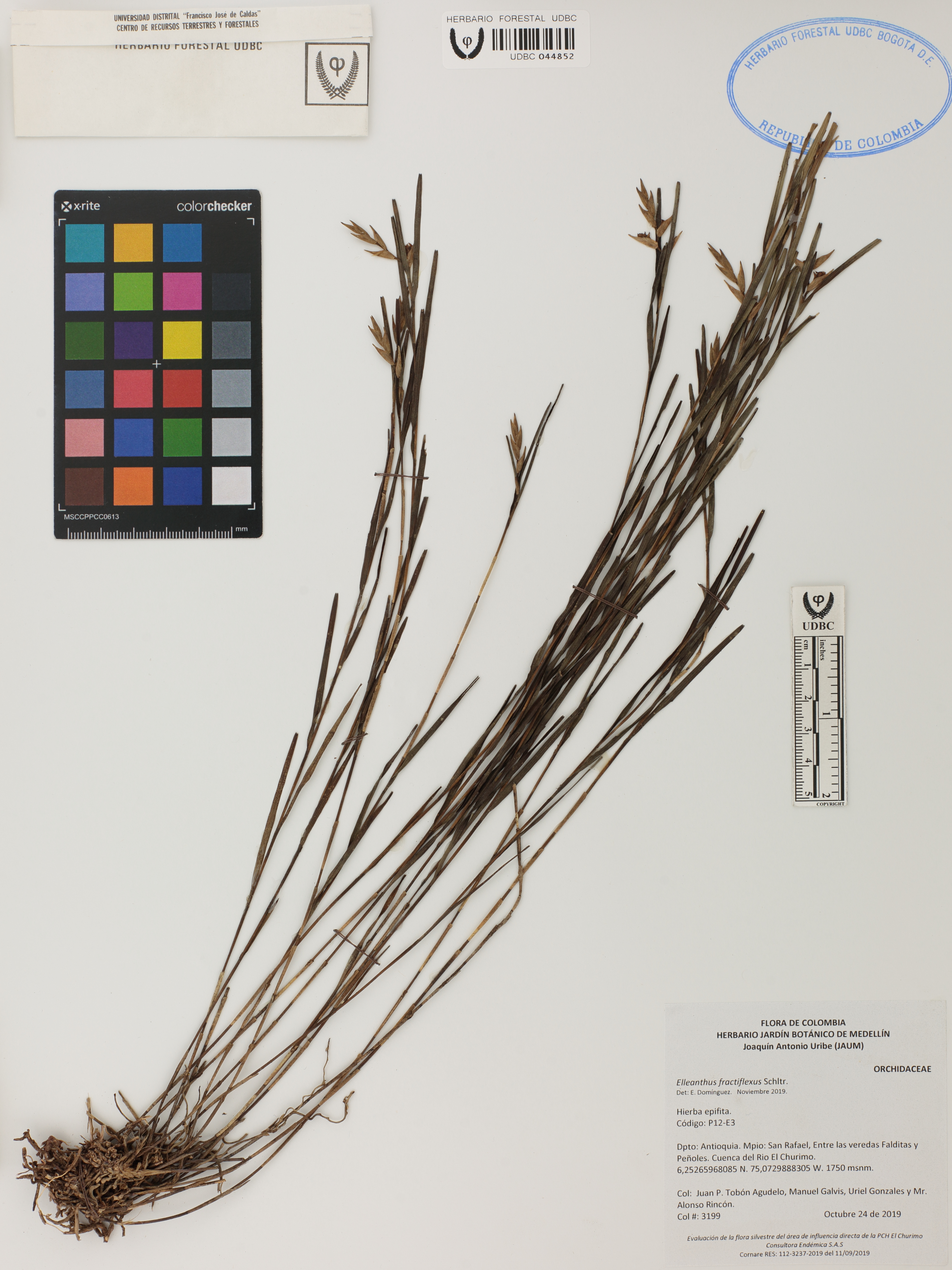 Fotografía del ejemplar Tobón-Agudelo, J. 3199, determinado como Elleanthus fractiflexus en el año 2019