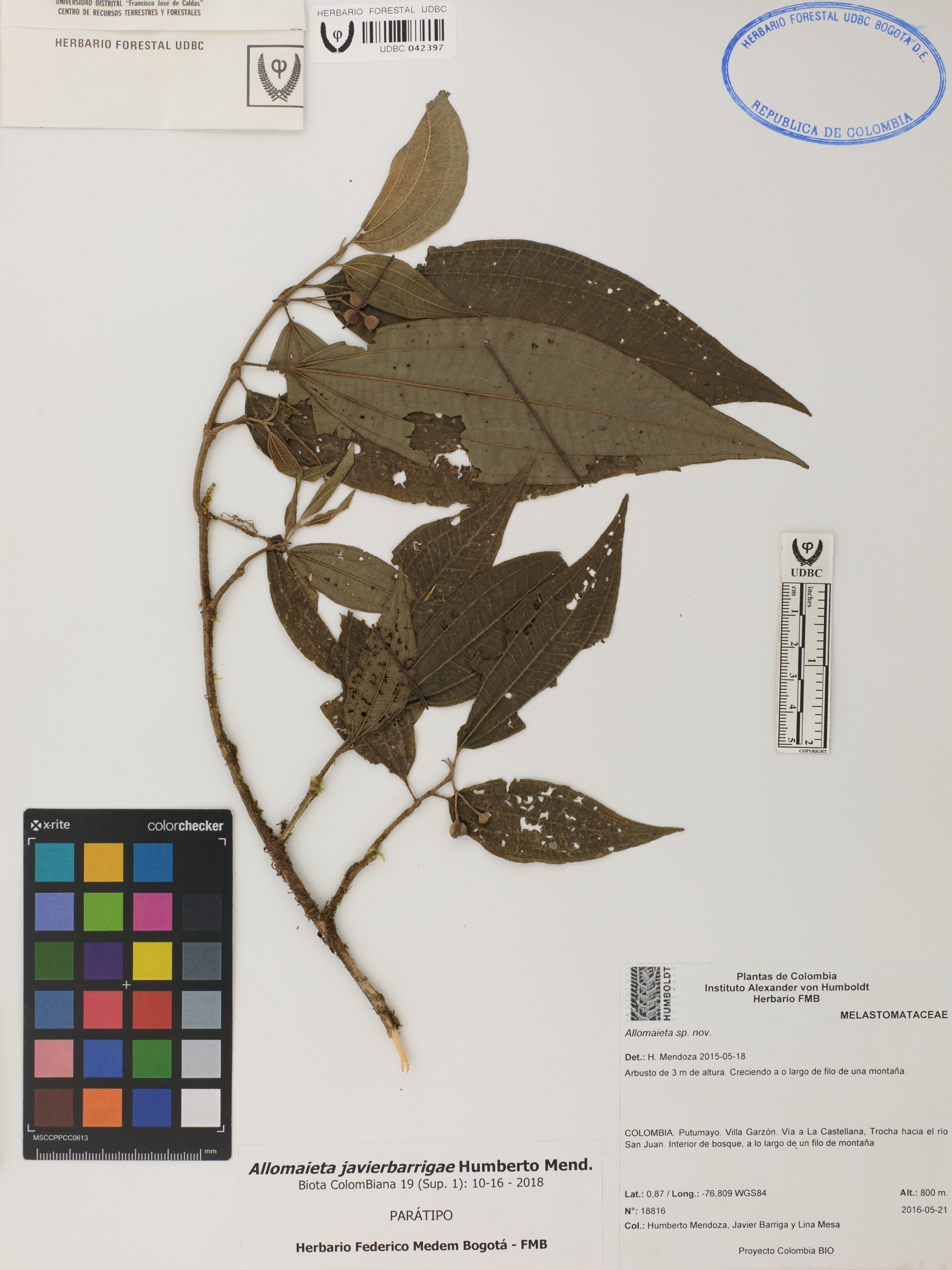 Fotografía del ejemplar Mendoza, H. 18816, Paratipo de Allomaieta javierbarrigae