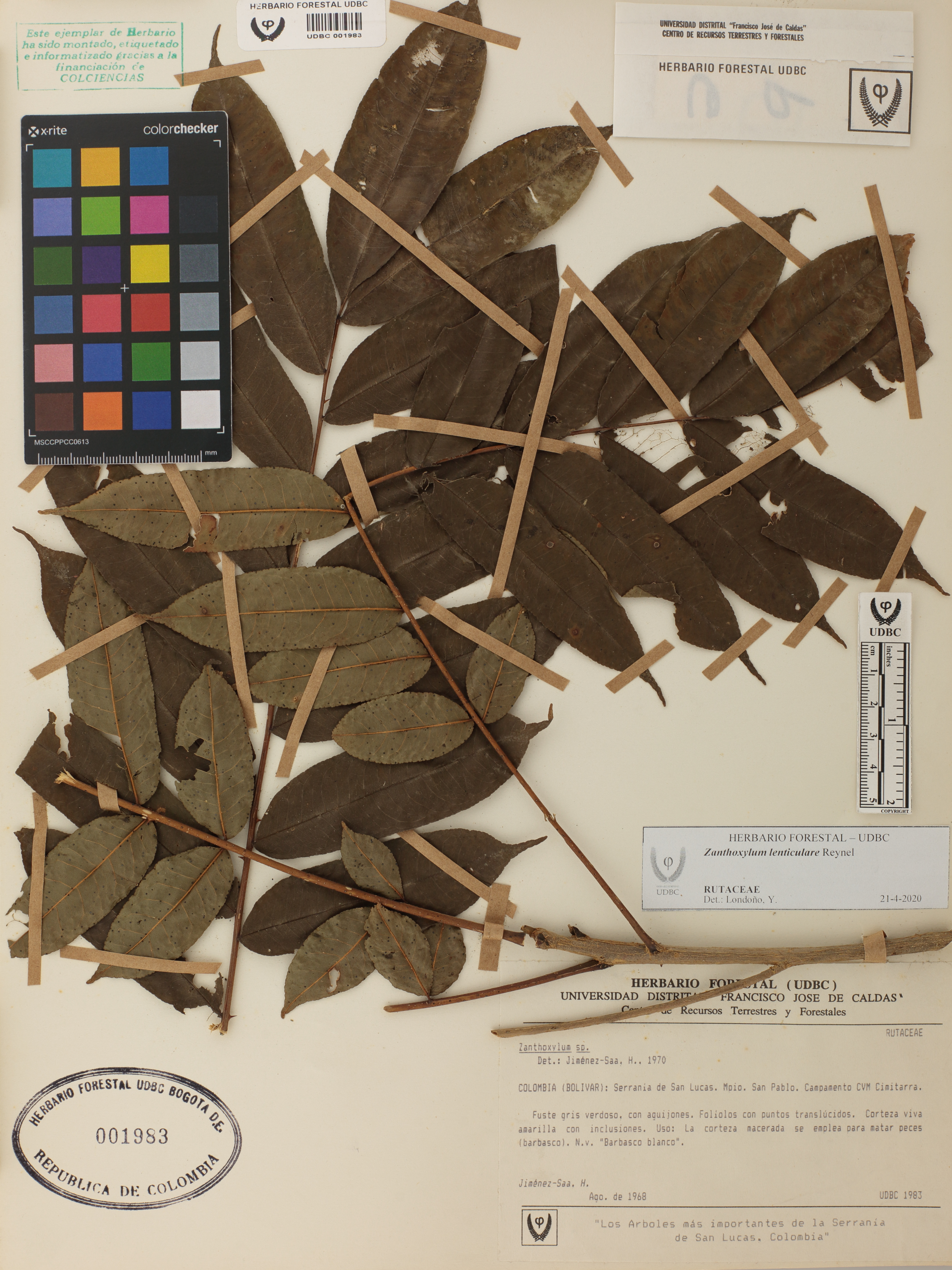 Fotografía del ejemplar Jiménez-Saa, H., determinado como Zanthoxylum lenticulare en el año 2020