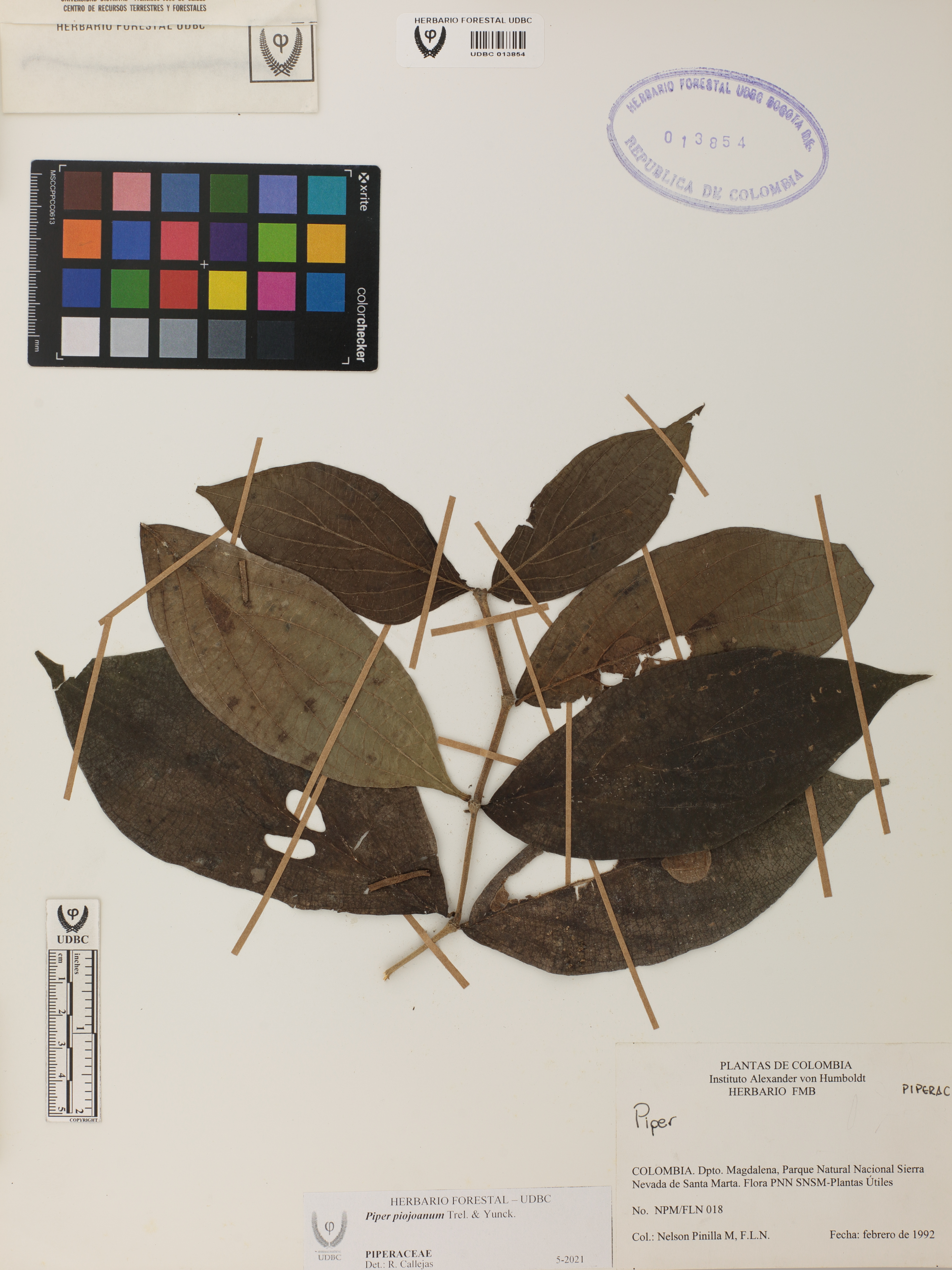 Fotografía del ejemplar Pinilla, N. 18, determinado como Piper piojoanum en el año 2021
