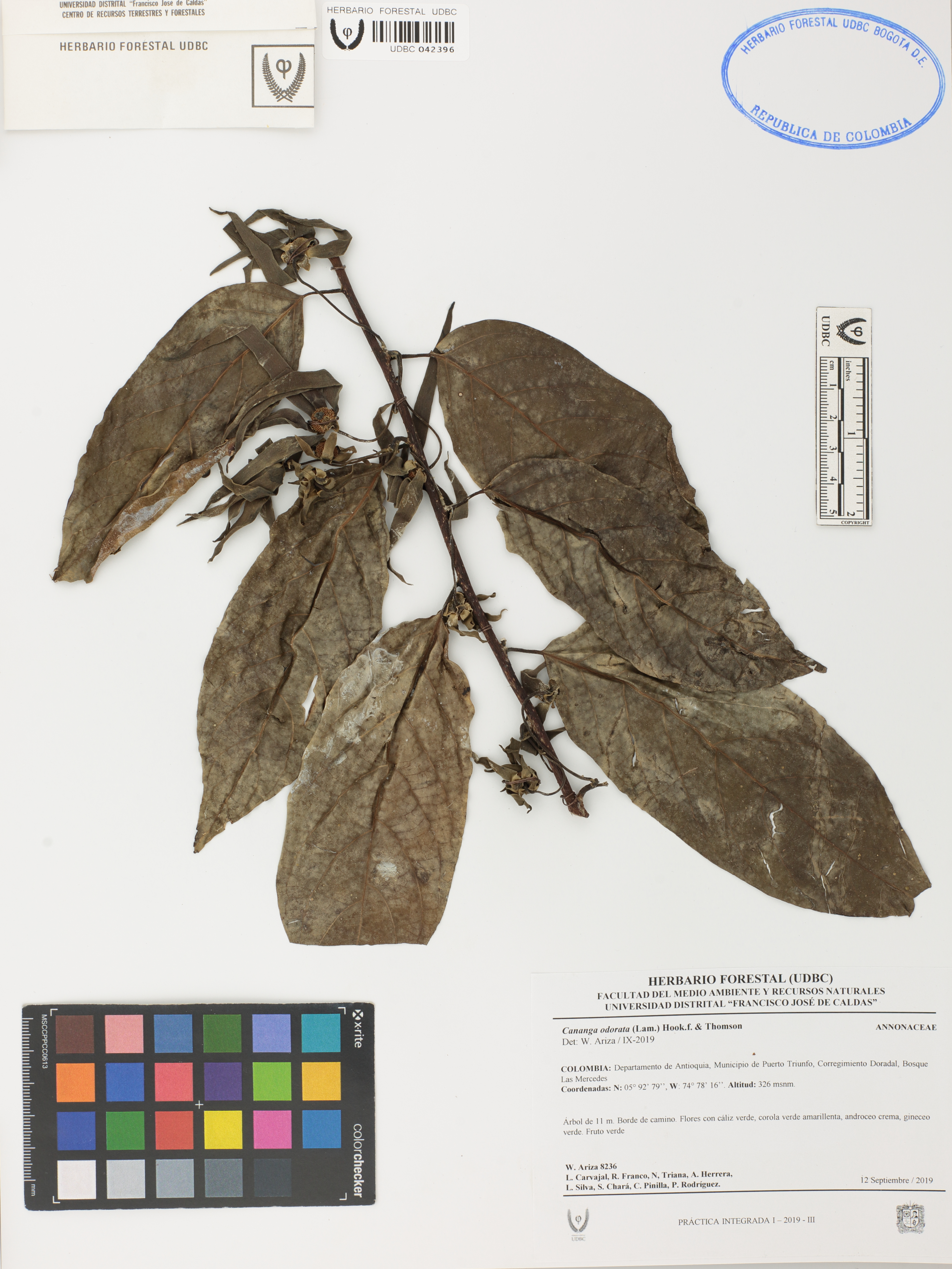 Fotografía del ejemplar Ariza, W. 8236, determinado como Cananga odorata en el año 2019
