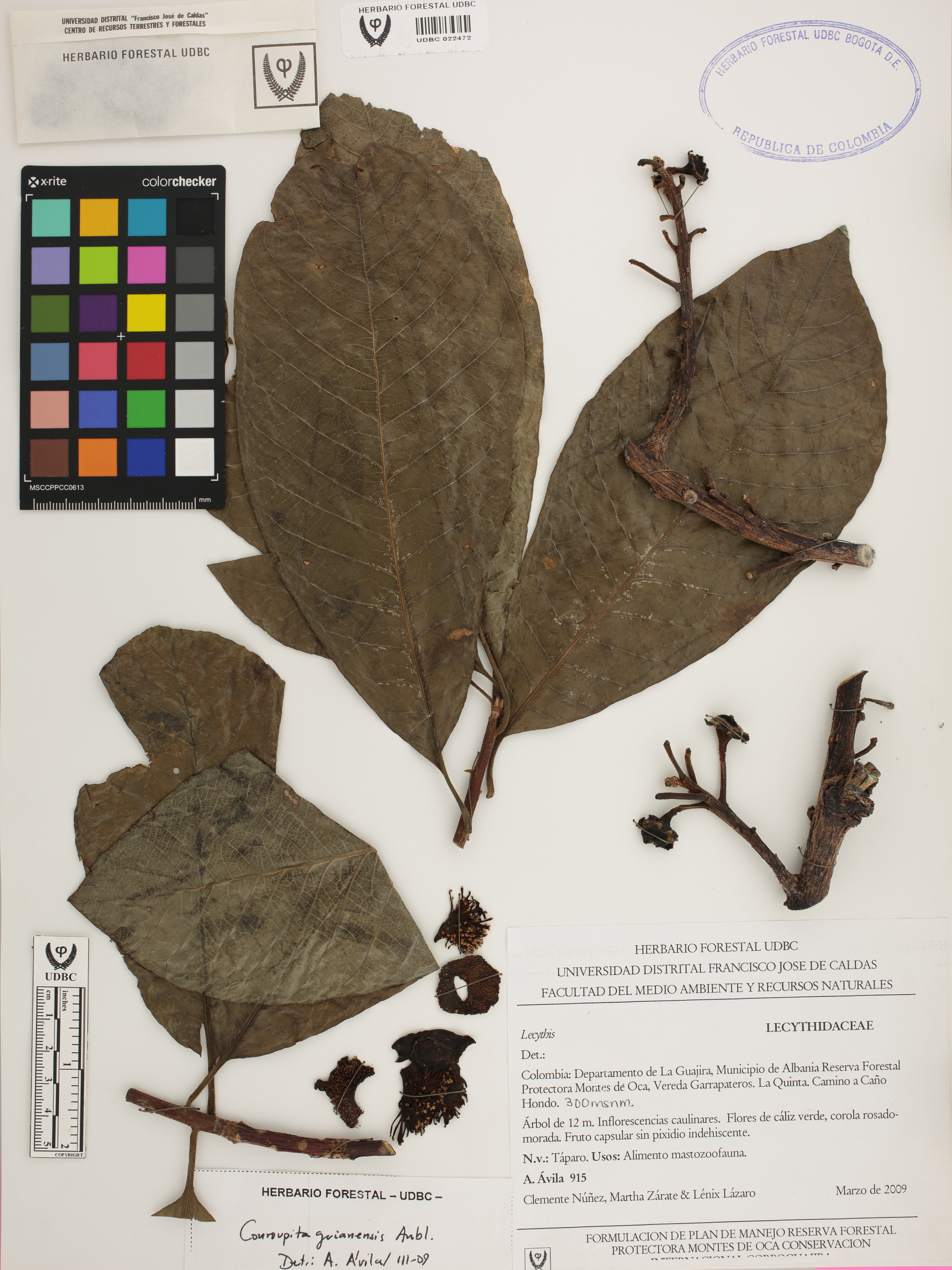 Fotografía del ejemplar Ávila, A. 915, determinado como Couroupita guianensis en el año 2009