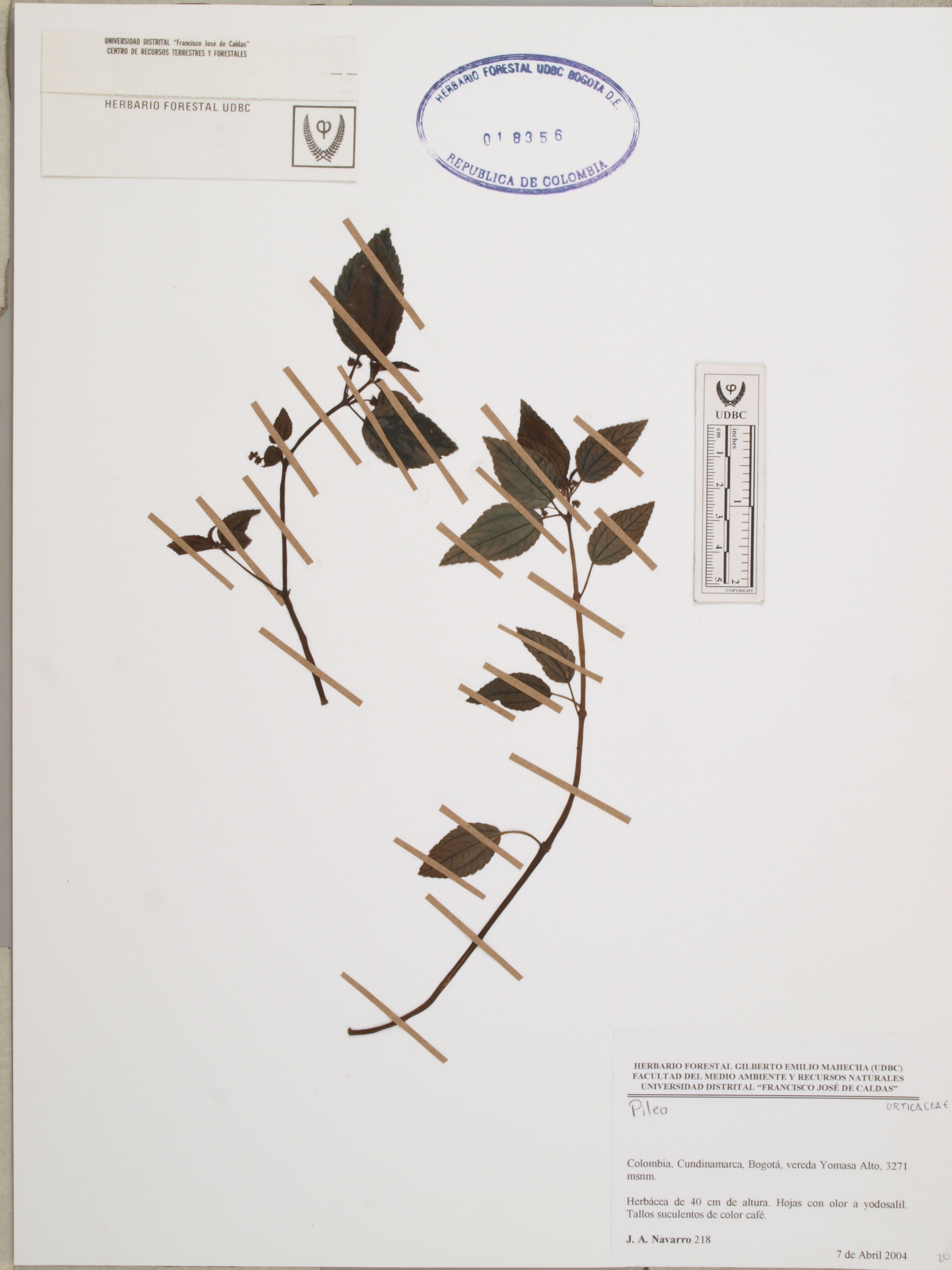 Fotografía del ejemplar Navarro, J. 218, determinado como Pilea sp.