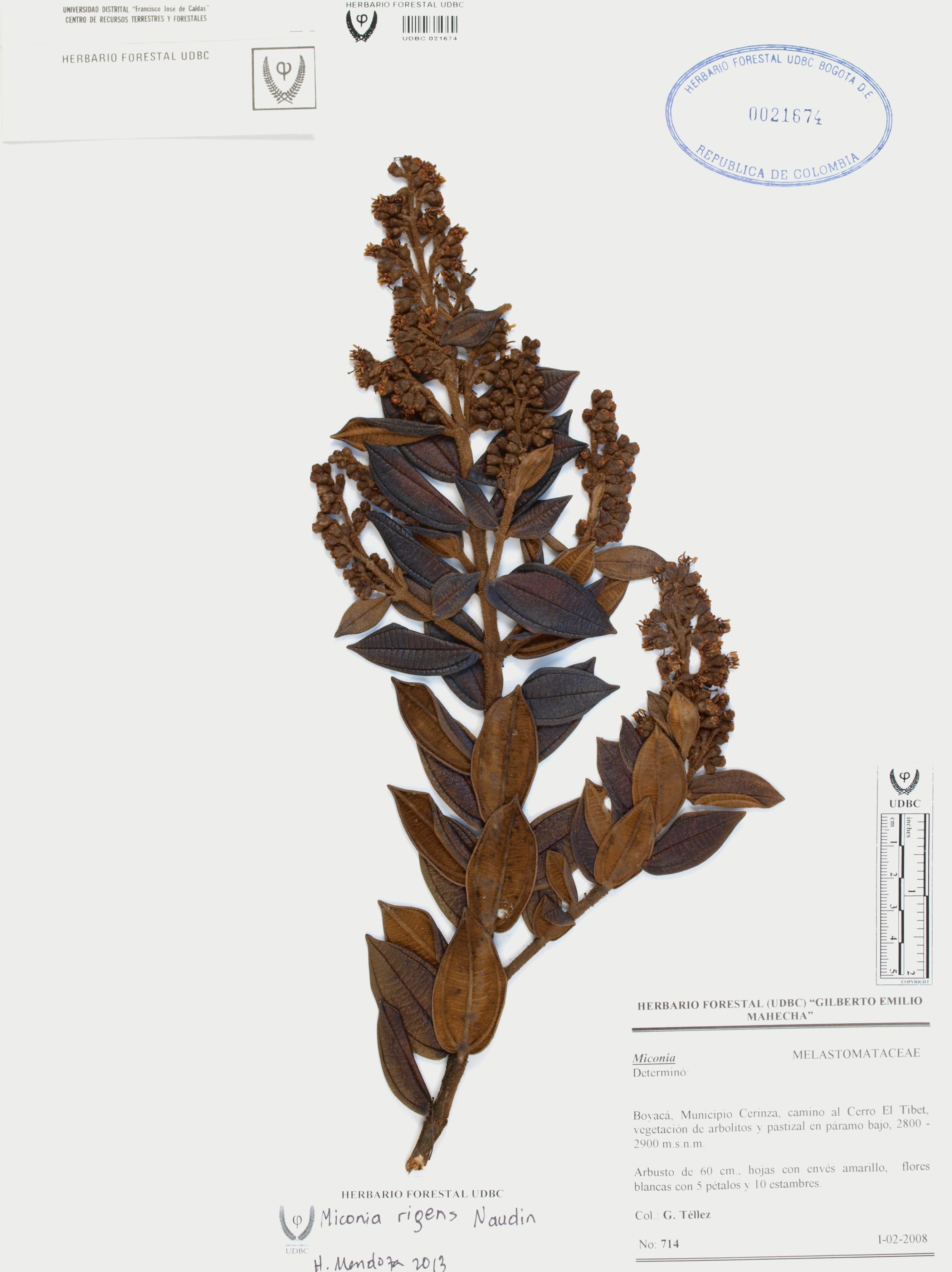 Fotografía del ejemplar Téllez, G. 714, determinado como Miconia rigens en el año 2013