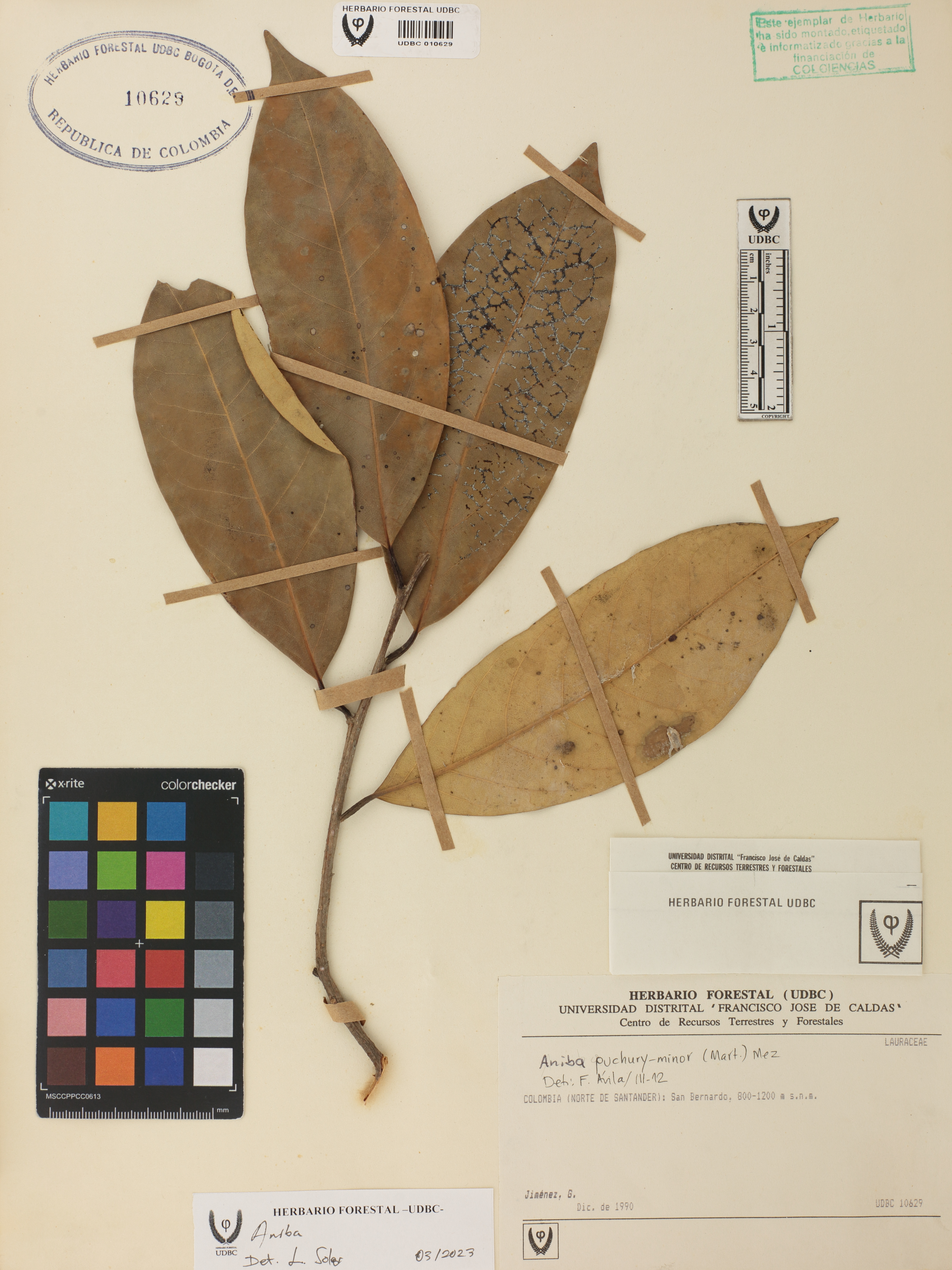 Fotografía del ejemplar Jiménez, G., determinado como Aniba sp. en el año 2023