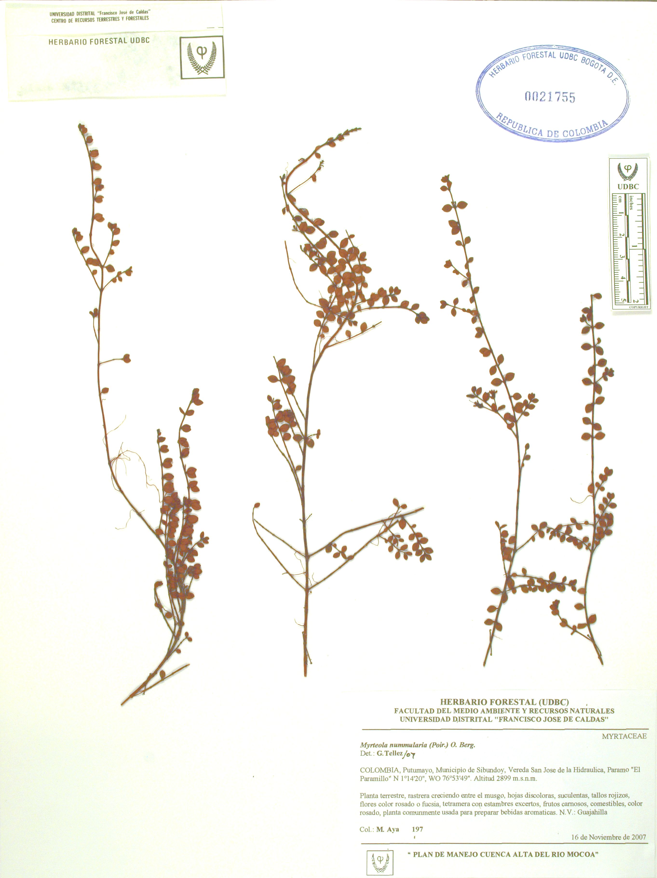 Fotografía del ejemplar Aya, M. 197, determinado como Myrteola nummularia en el año 2007
