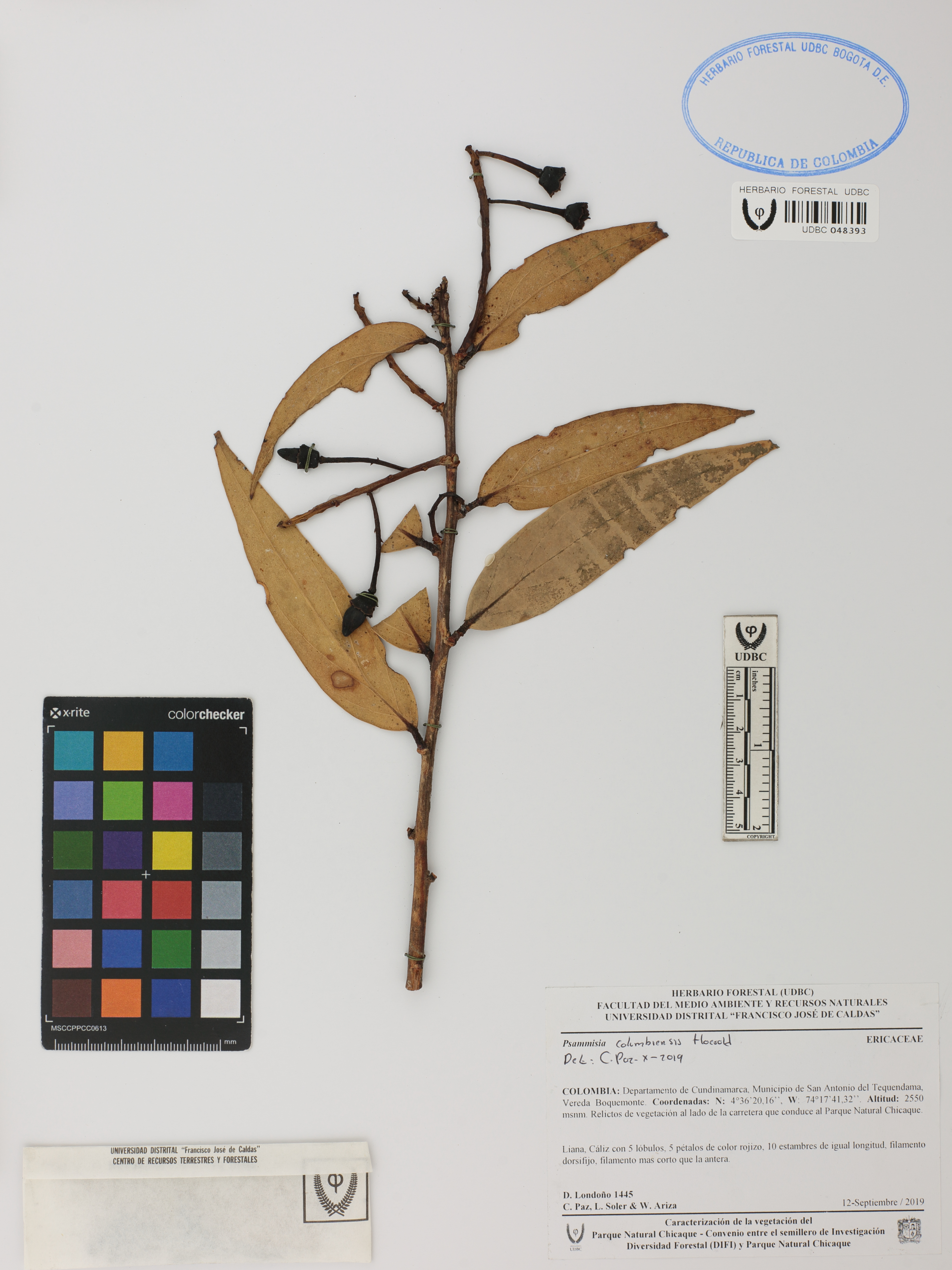 Fotografía del ejemplar Londoño, D. 1445, determinado como Psammisia columbiensis en el año 2019