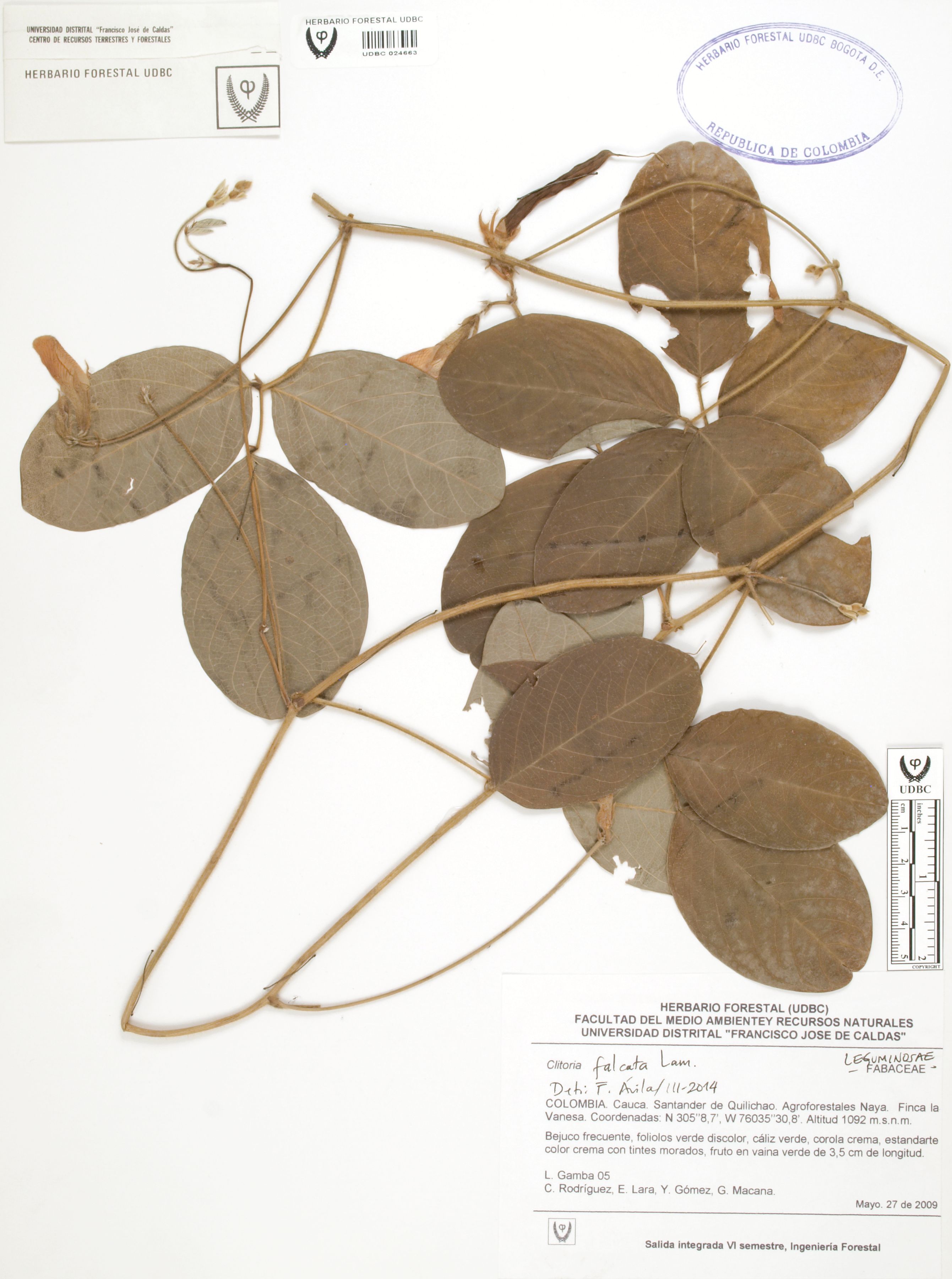Fotografía del ejemplar Gamba, L. 5, determinado como Clitoria falcata en el año 2014