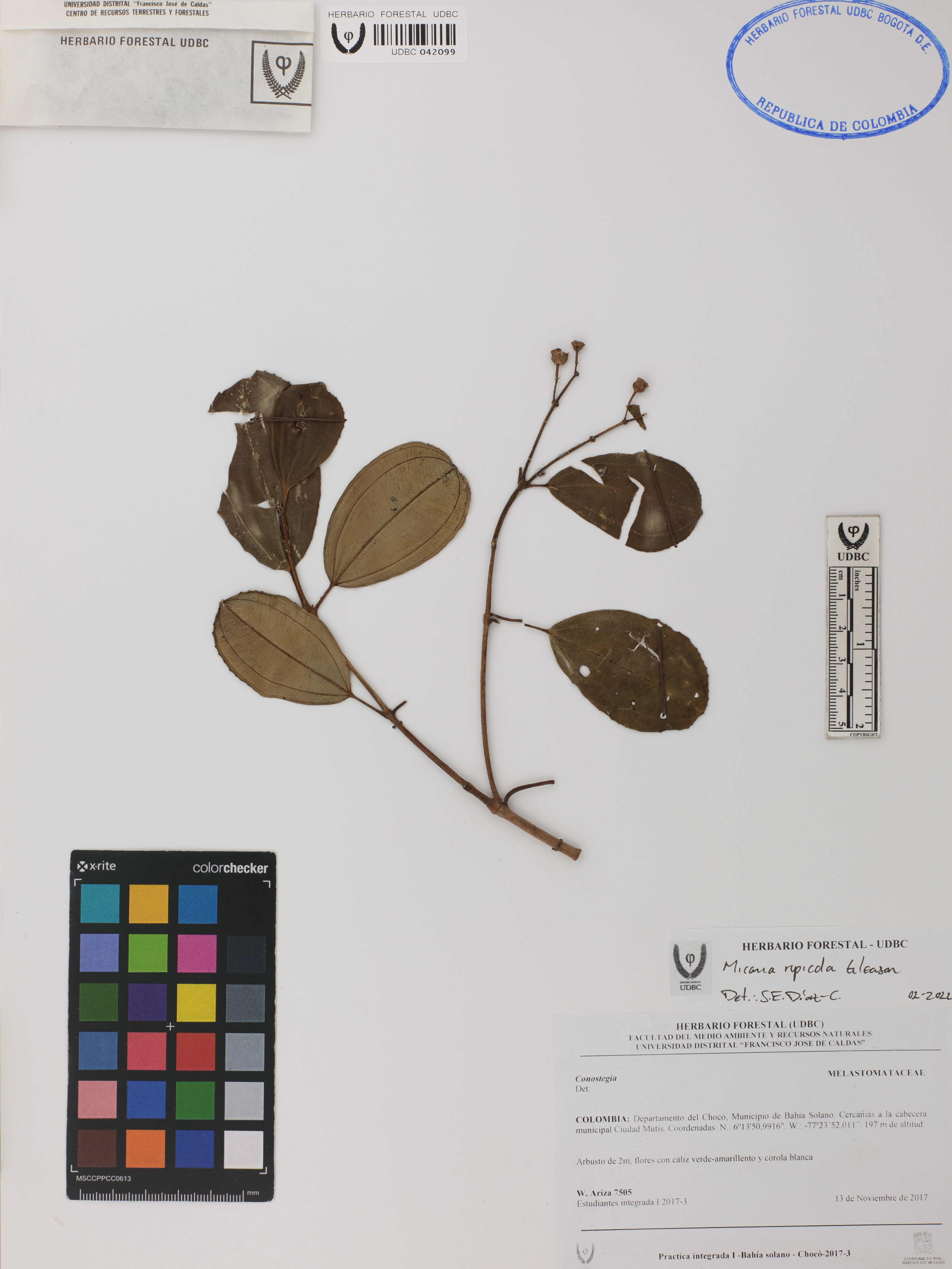 Fotografía del ejemplar Ariza, W. 7505, determinado como Miconia rupicola en el año 2022