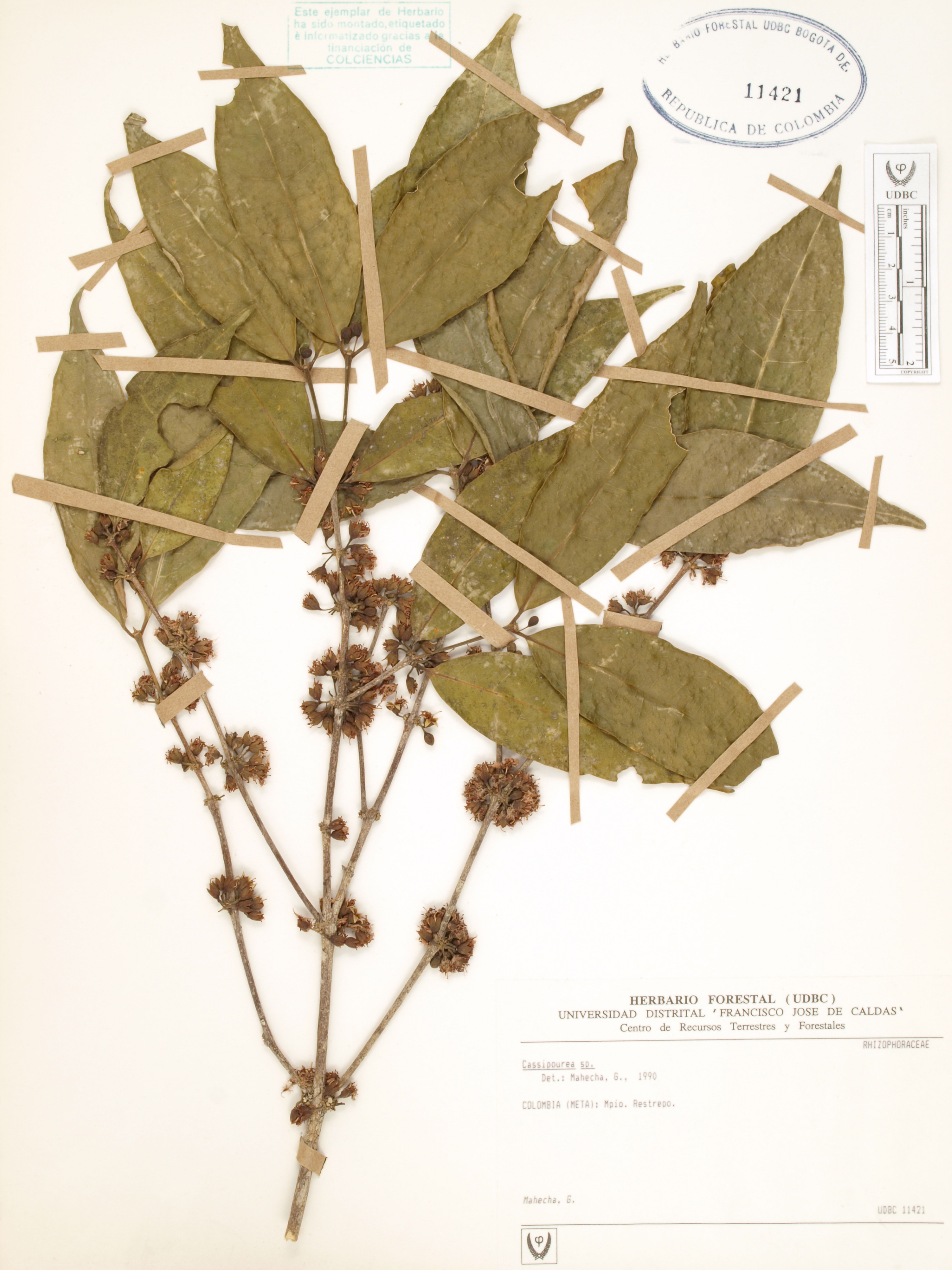 | dc.description | Fotografía del ejemplar Mahecha, G., determinado como Cassipourea sp. en el año 1990 | |