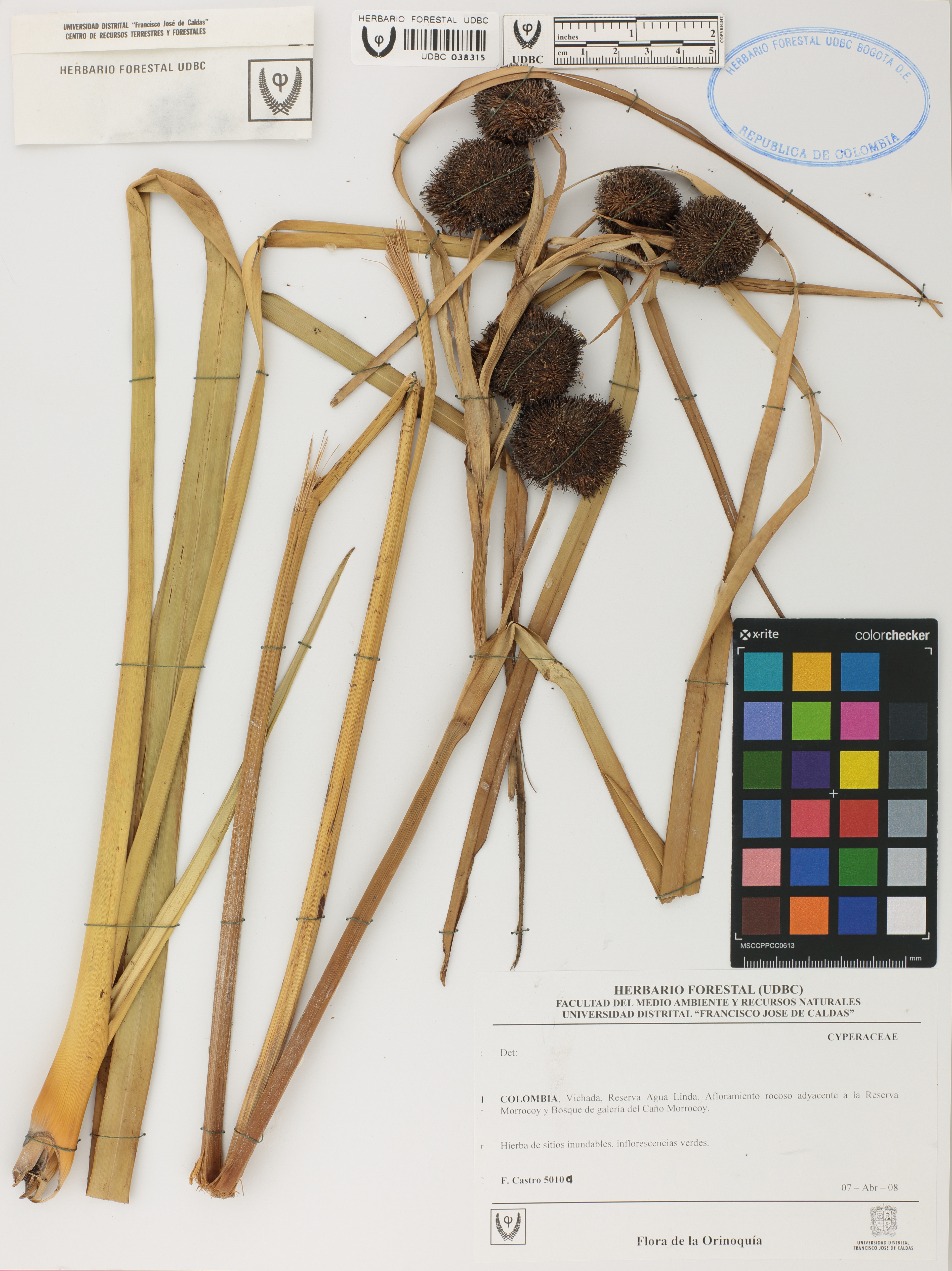 Fotografía del ejemplar Castro, F. 5010, determinado como Cyperaceae