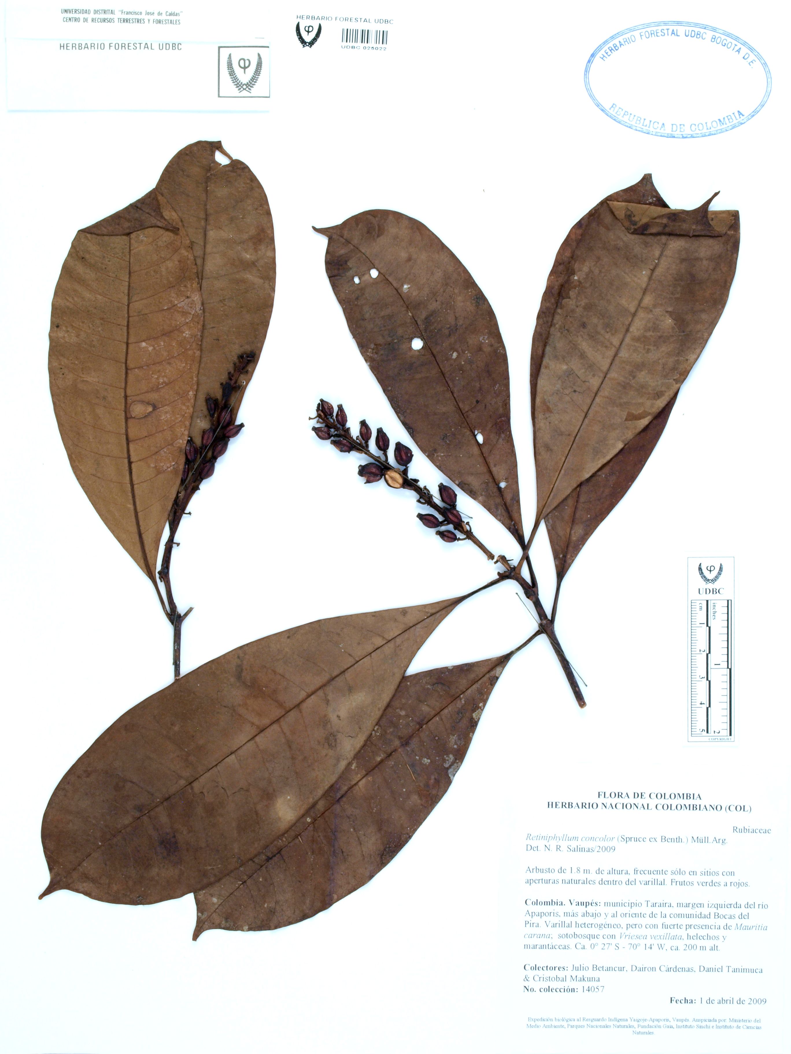 | dc.description | Fotografía del ejemplar Betancur, J. 14057, determinado como Retiniphyllum concolor en el año 2009 | |