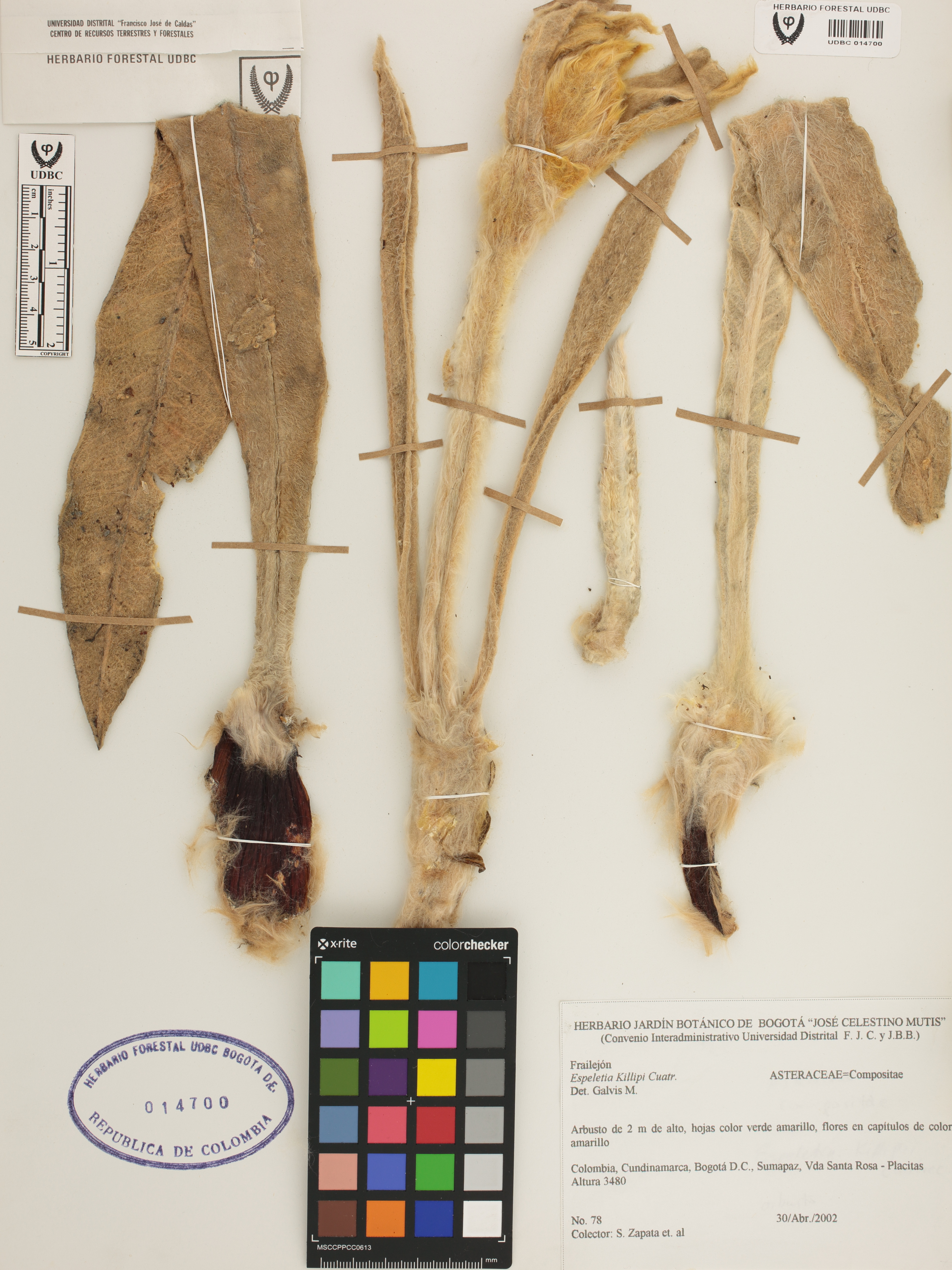 | dc.description | Fotografía del ejemplar Zapata, S. 78, determinado como Espeletia killipii | |