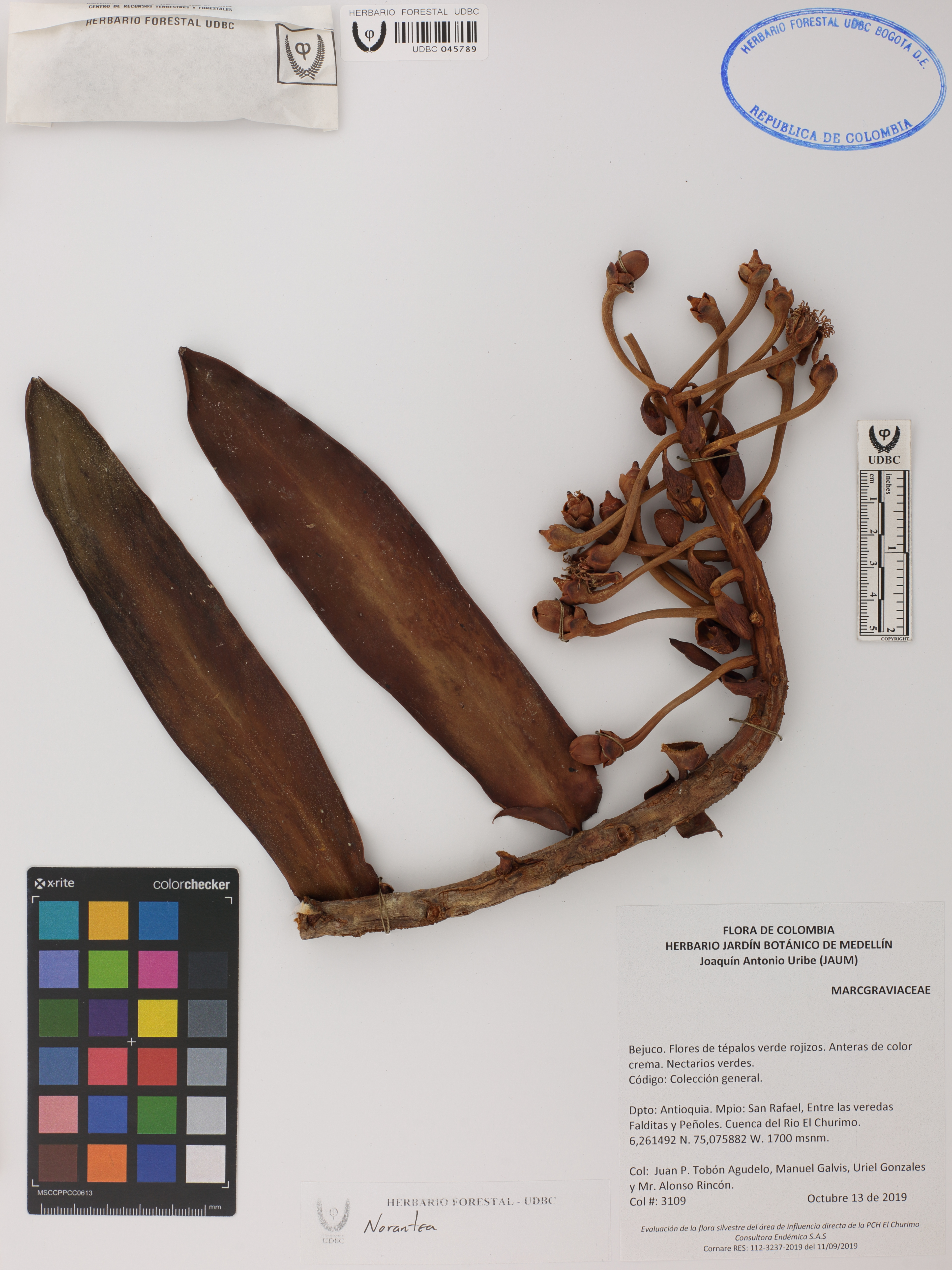 Fotografía del ejemplar Tobón-Agudelo, J. 3109, determinado como Norantea sp.