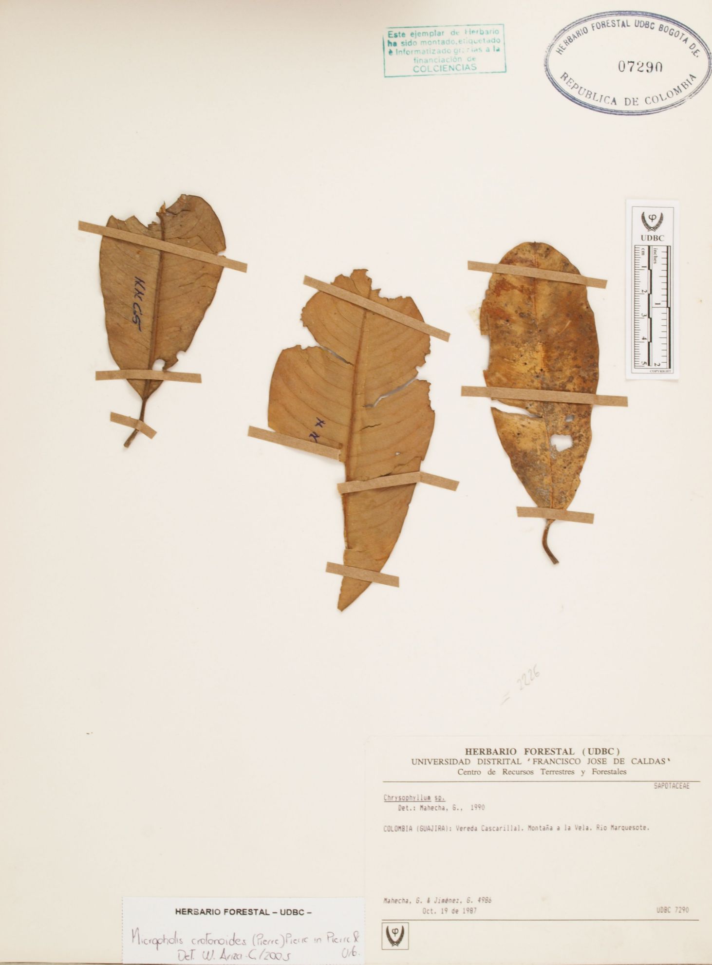 Fotografía del ejemplar Mahecha, G. 4986, determinado como Micropholis crotonoides en el año 2005