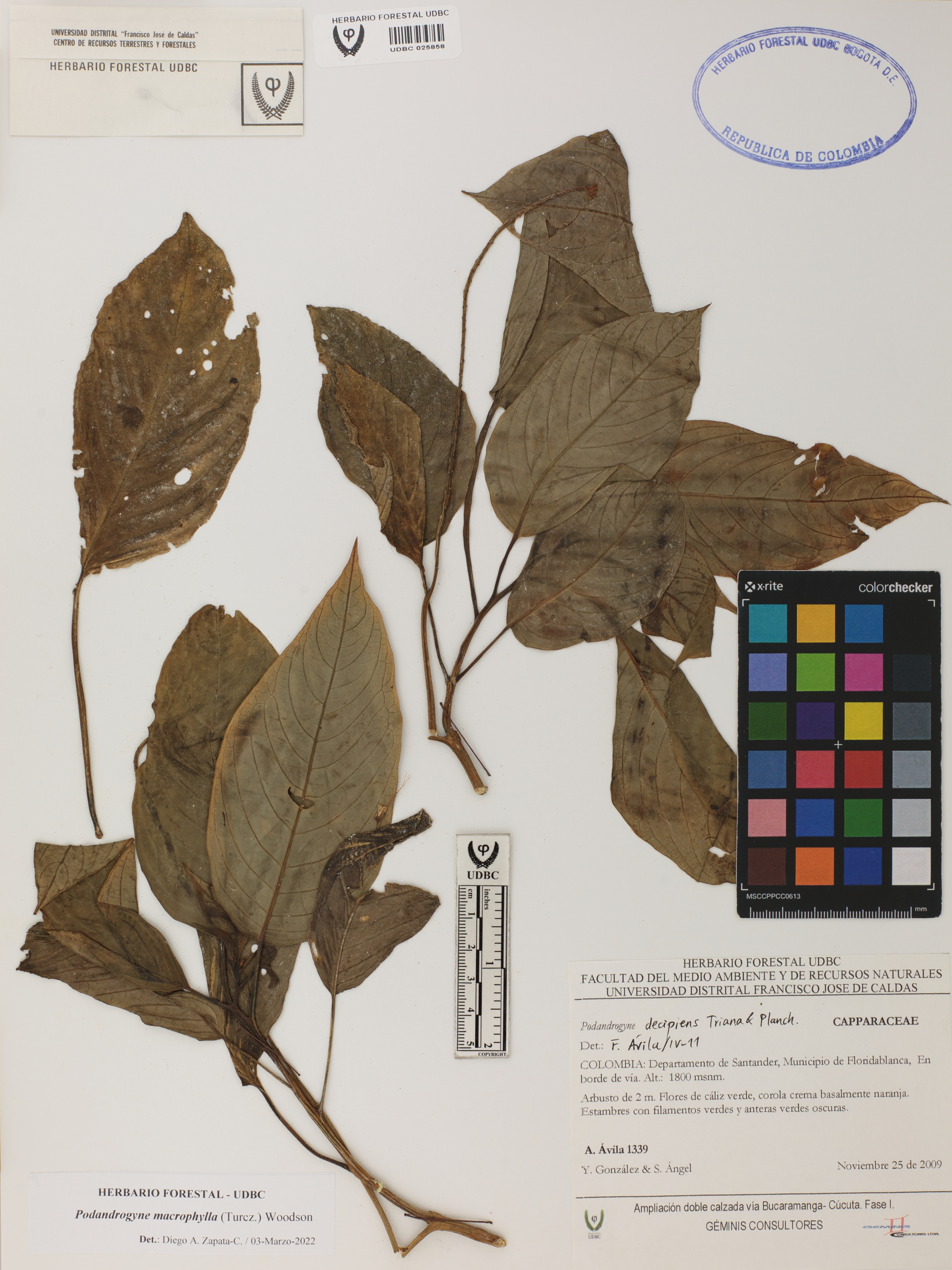 Fotografía del ejemplar Ávila, F. 1339, determinado como Podandrogyne macrophylla en el año 2022