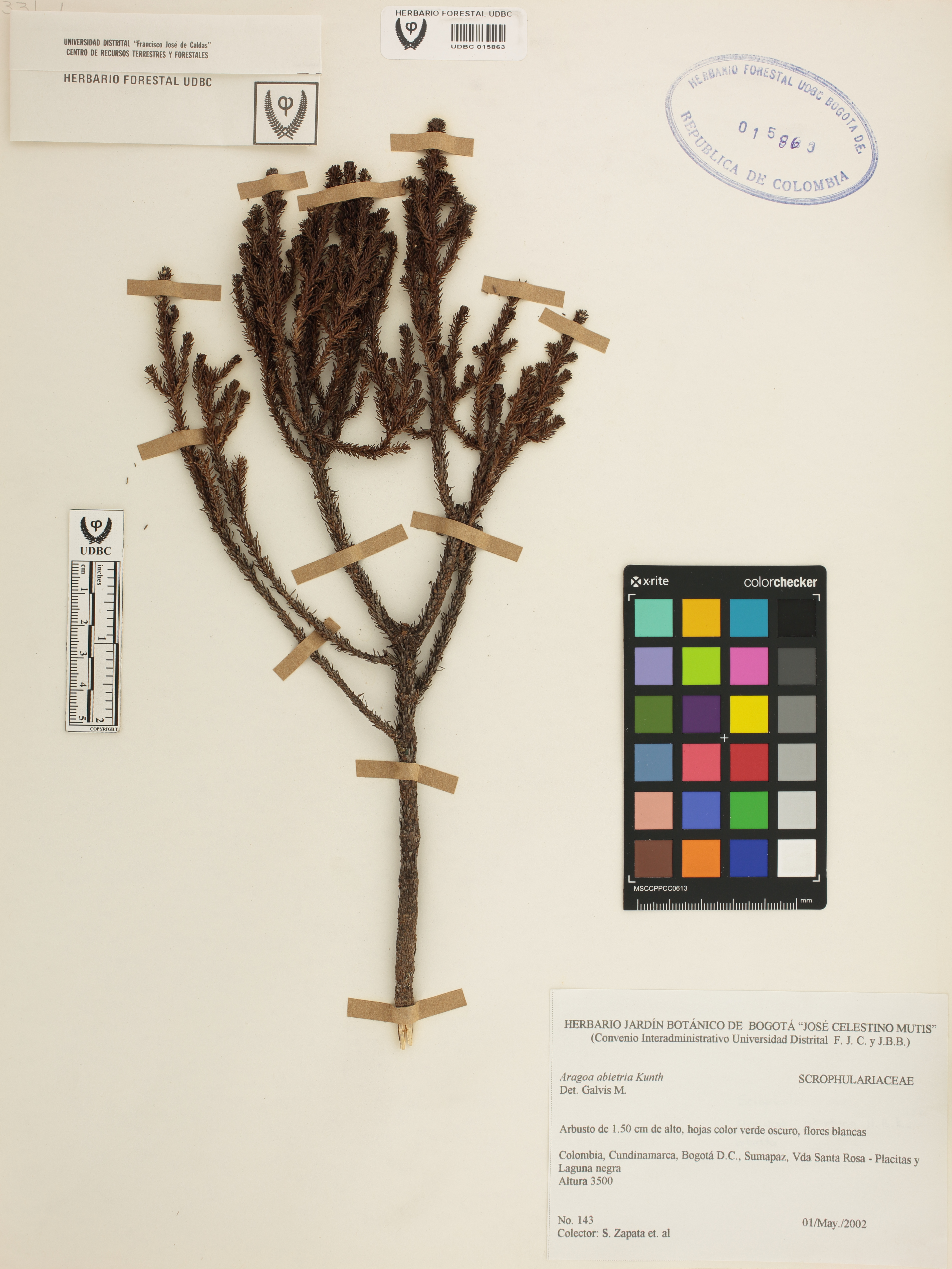 Fotografía del ejemplar Zapata, S. 143, determinado como Aragoa abietina