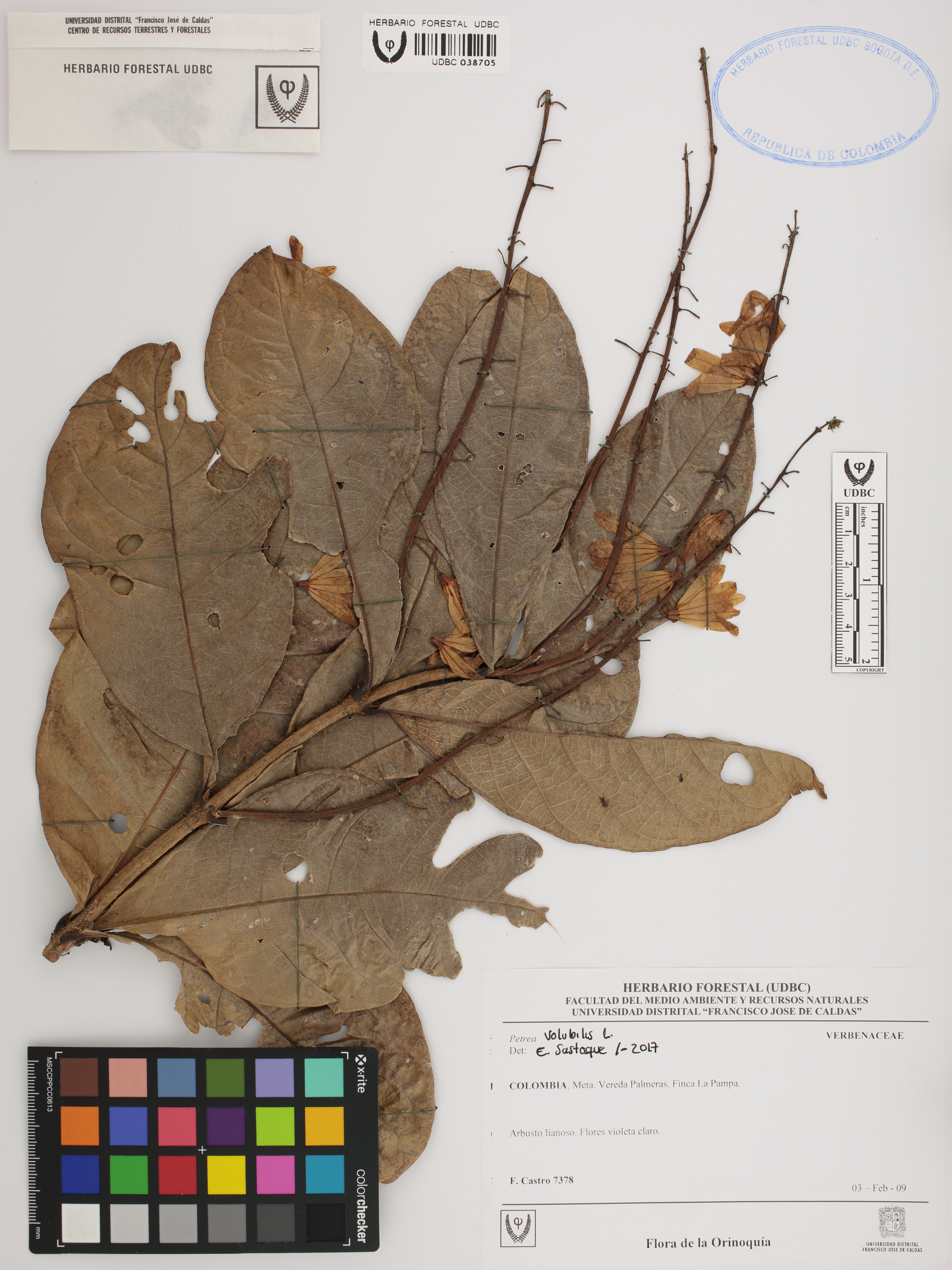 Fotografía del ejemplar Castro, F. 7378, determinado como Petrea volubilis en el año 2017