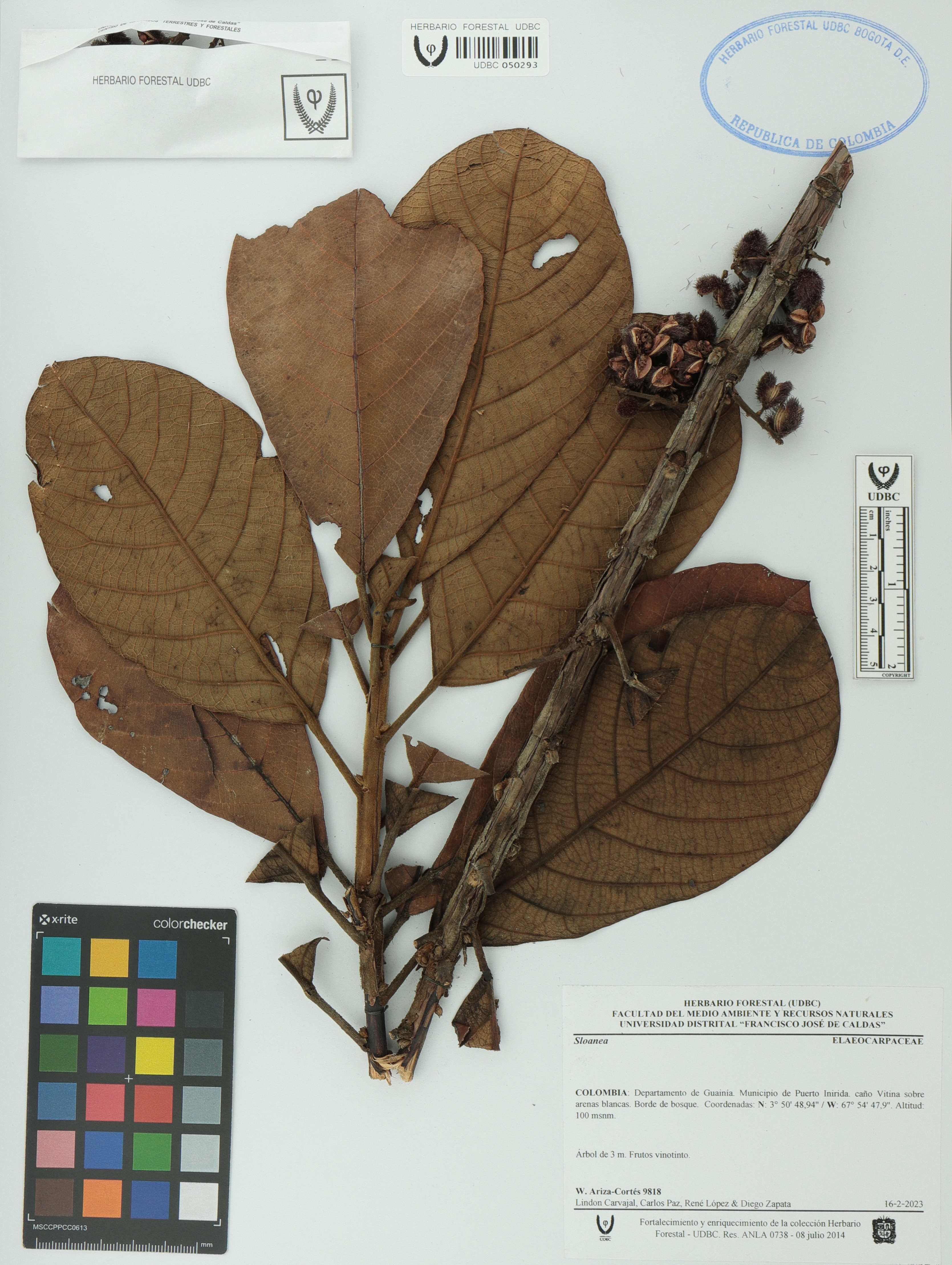 Fotografía del ejemplar Ariza-Cortés, W. 9818, determinado como Sloanea sp.