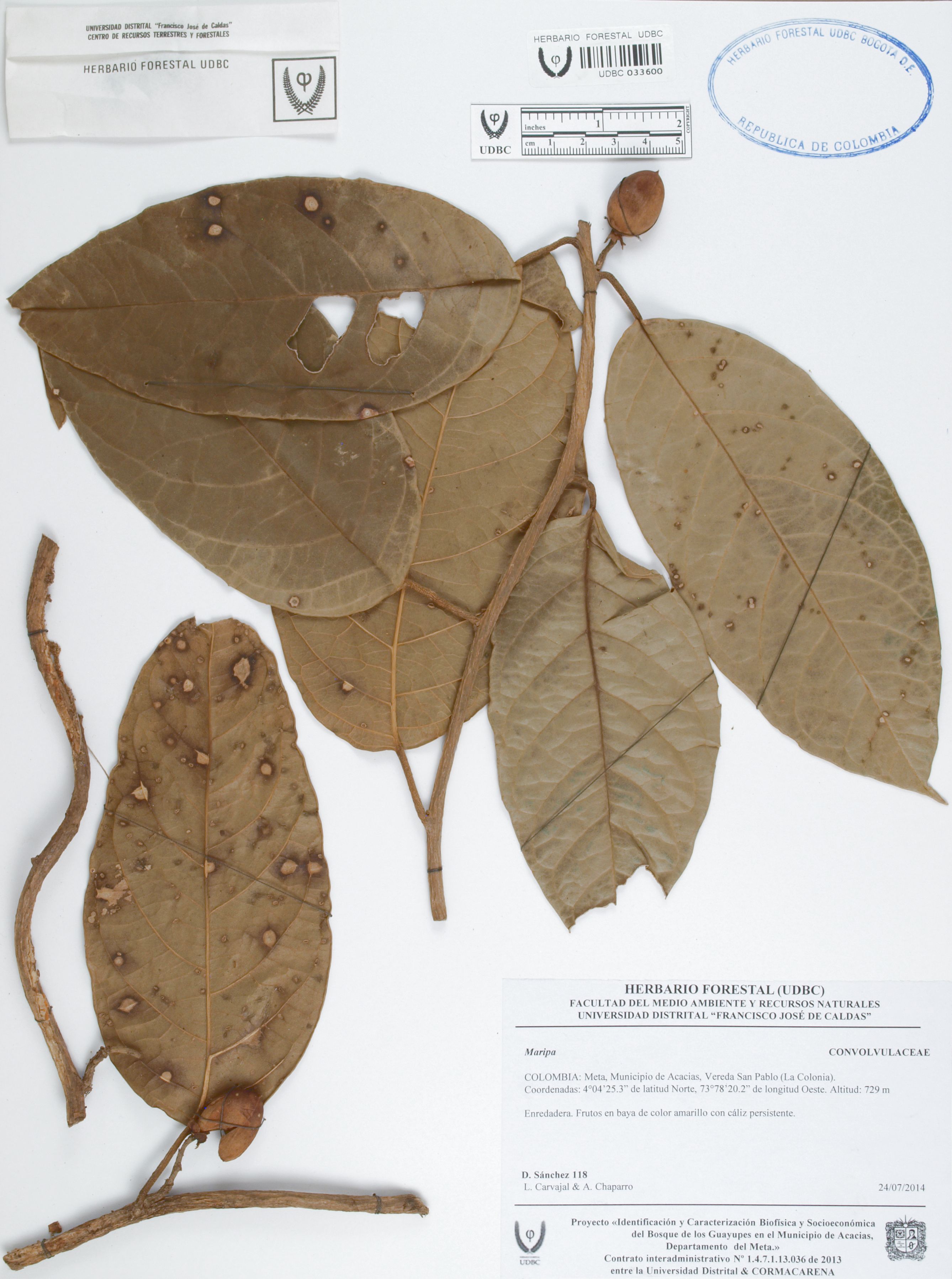 Fotografía del ejemplar Sánchez, D. 118, determinado como Maripa sp.