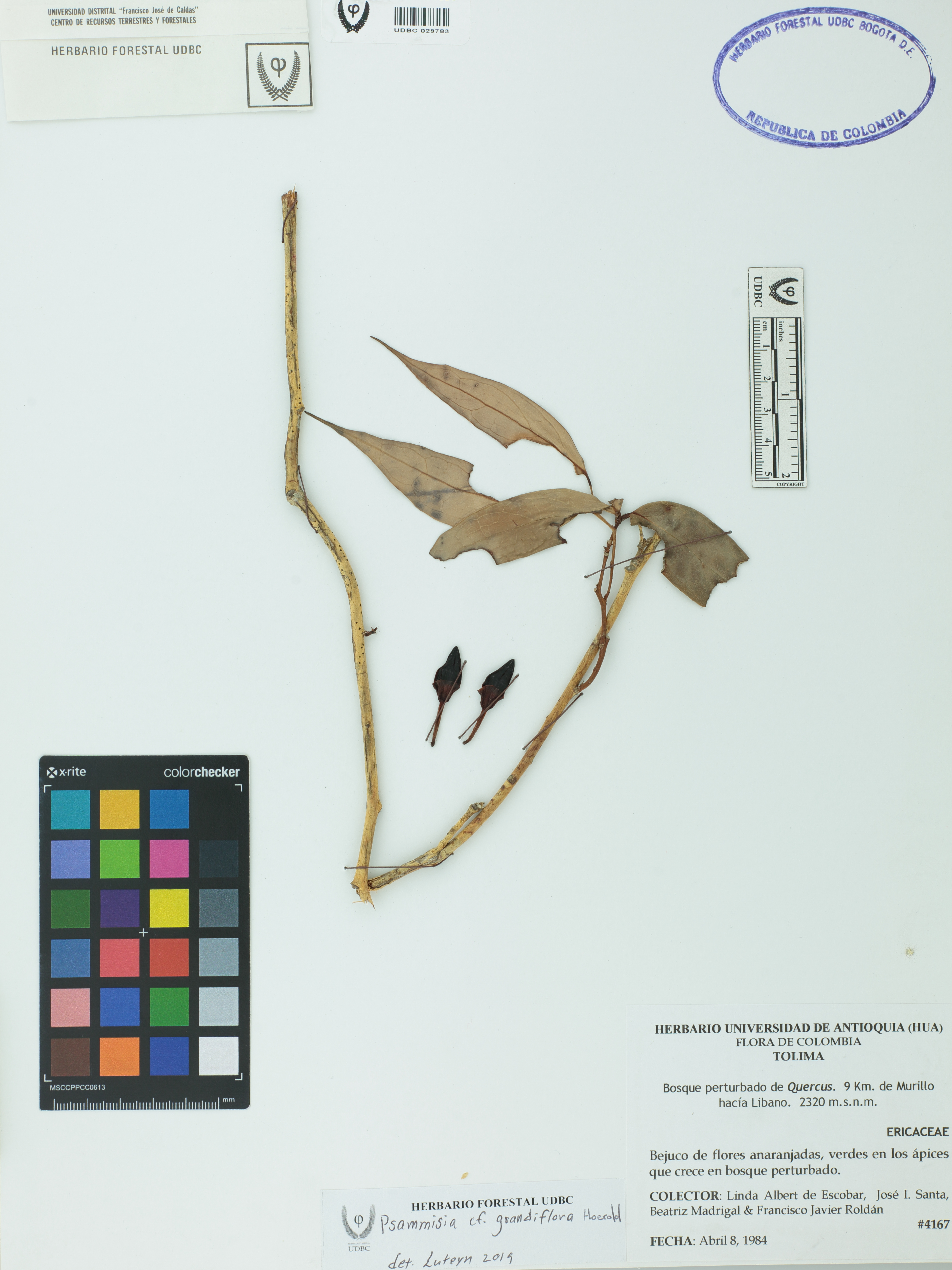 Fotografía del ejemplar Albert de E., L. 4167, determinado como Psammisia grandiflora en el año 2019