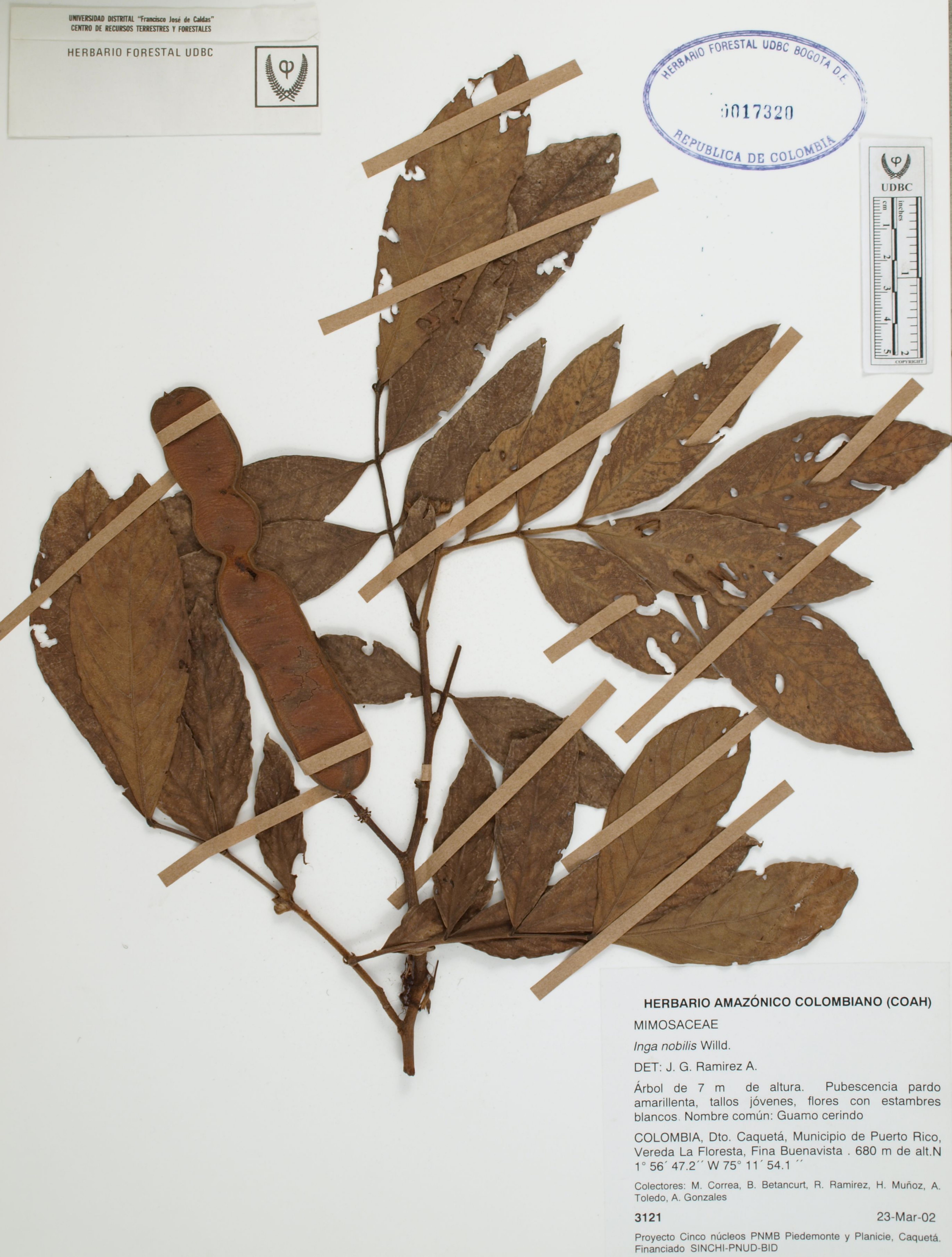 Fotografía del ejemplar Correa, M. 3121, determinado como Inga nobilis en el año 2002