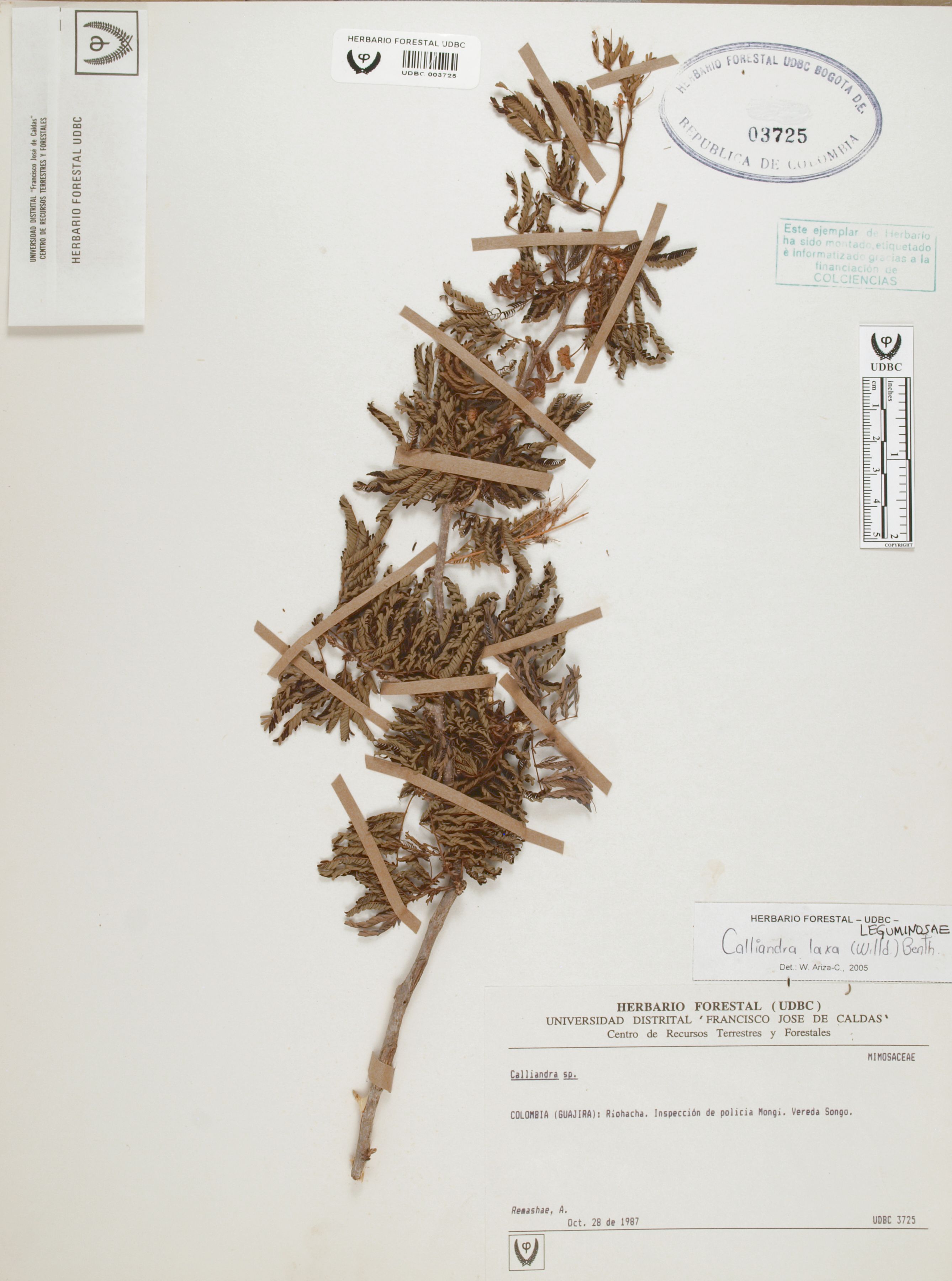 | dc.description | Fotografía del ejemplar Remashae, A., determinado como Calliandra laxa en el año 2005 | |