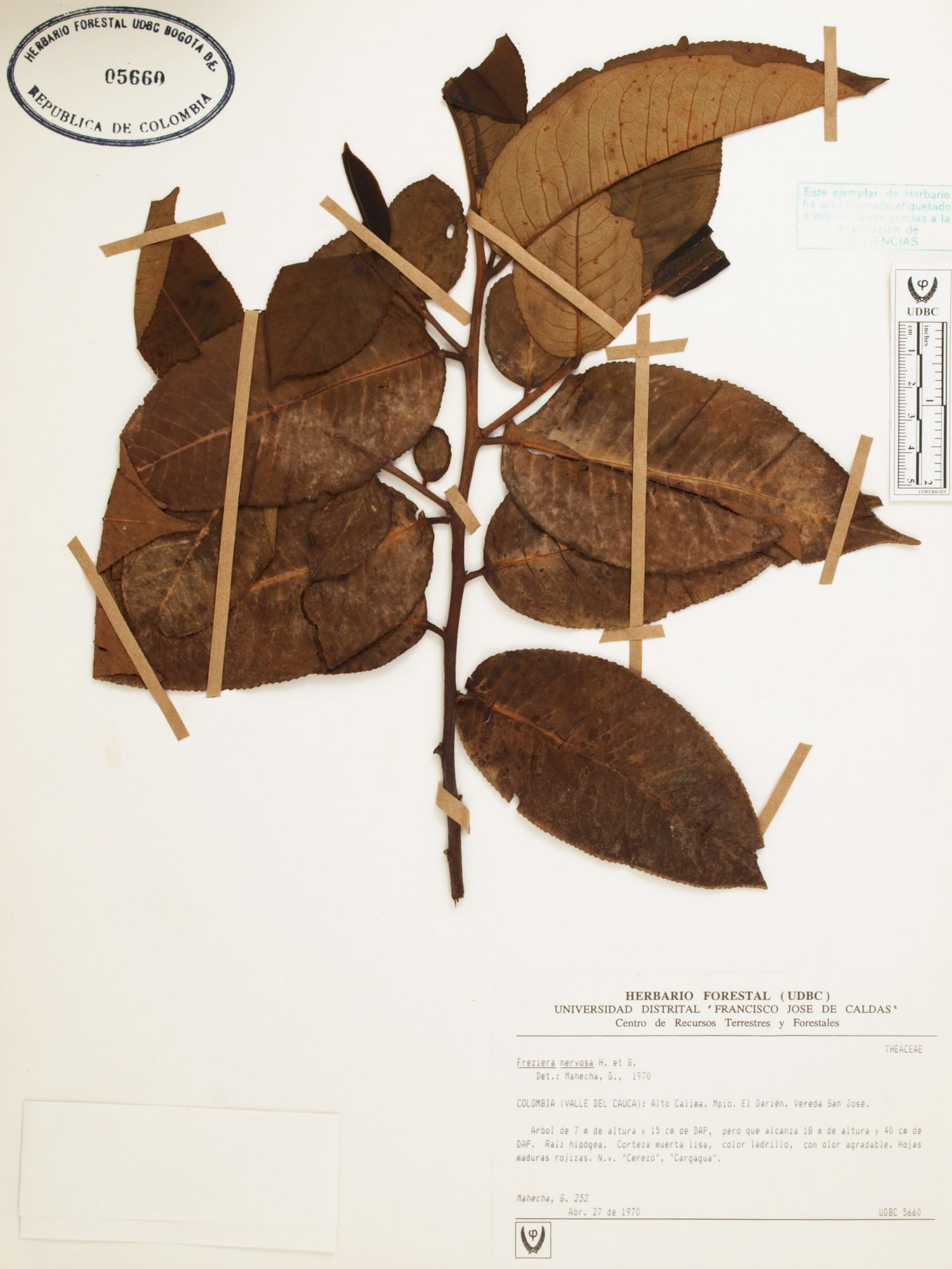 Fotografía del ejemplar Mahecha, G. 252, determinado como Freziera nervosa en el año 1970