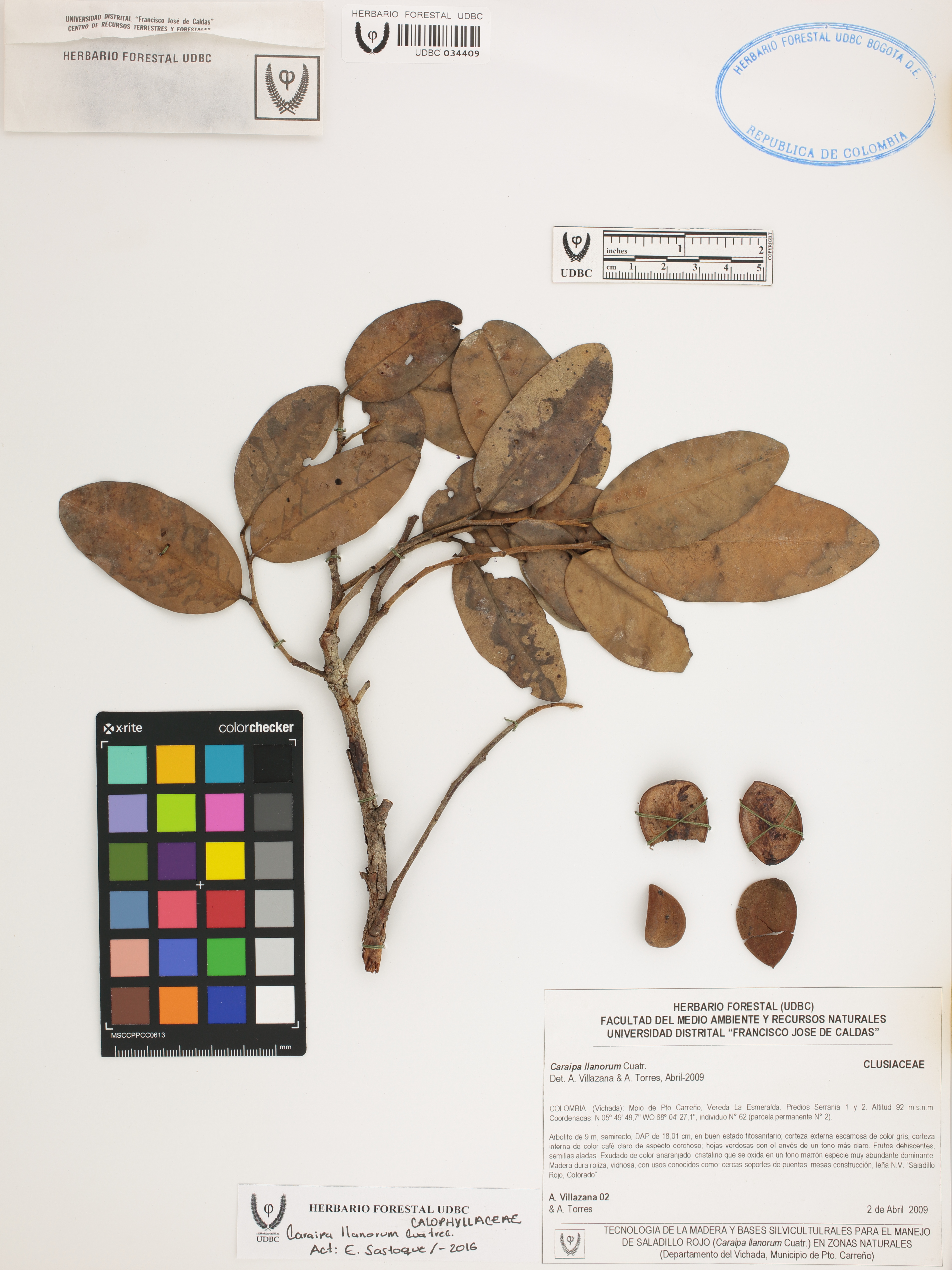 Fotografía del ejemplar Villazana, A. 2, determinado como Caraipa llanorum en el año 2016