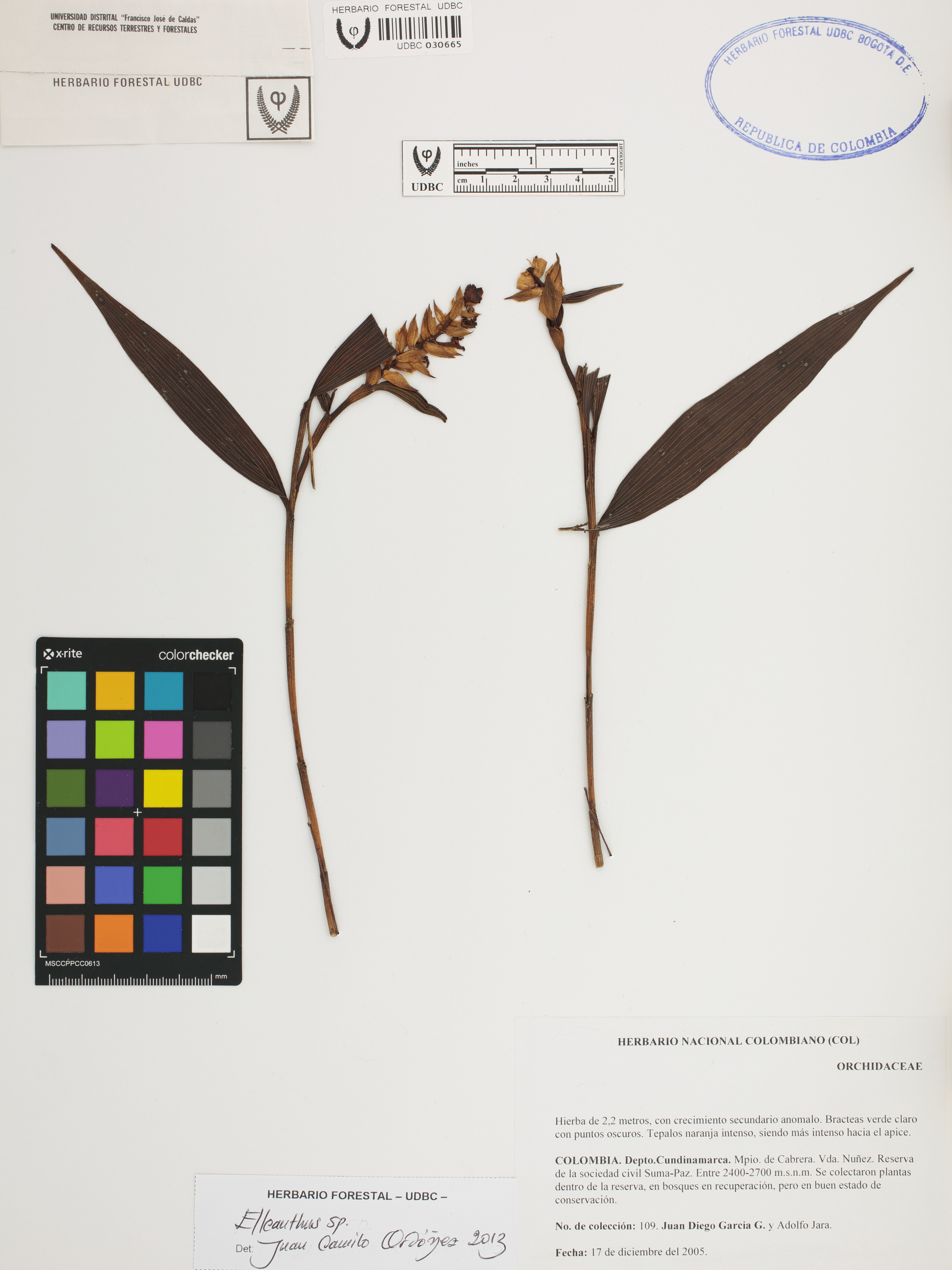 Fotografía del ejemplar García, J. 109, determinado como Elleanthus sp. en el año 2013