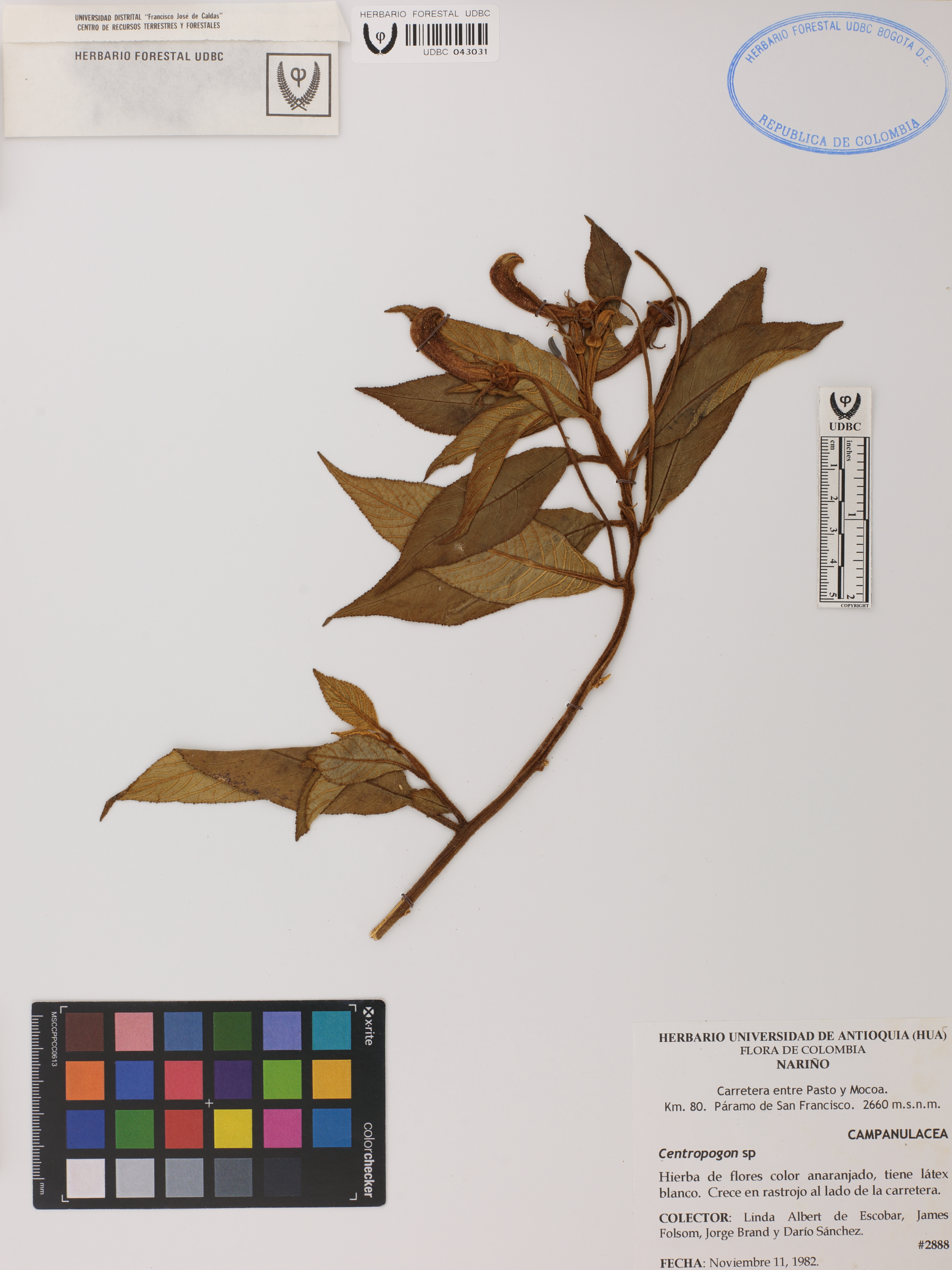 Fotografía del ejemplar Albert de Escobar, L. 2888, determinado como Centropogon sp.