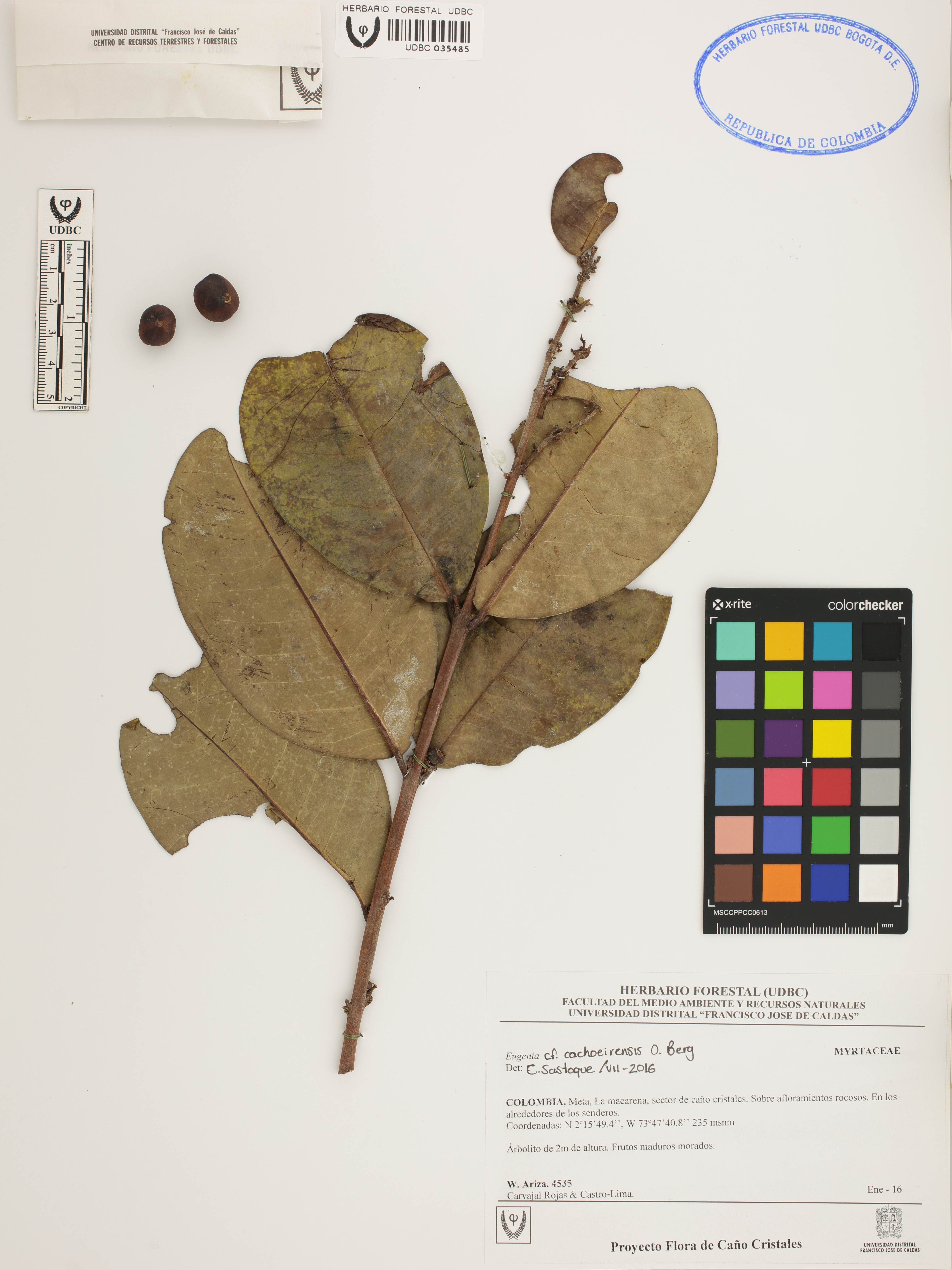 Fotografía del ejemplar Ariza, W. 4535, determinado como Eugenia cachoeirensis en el año 2016